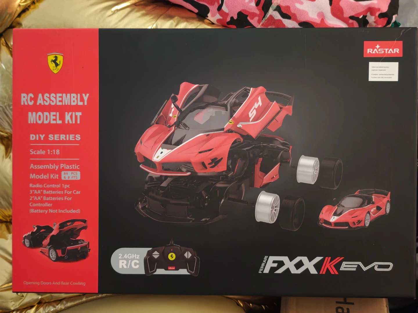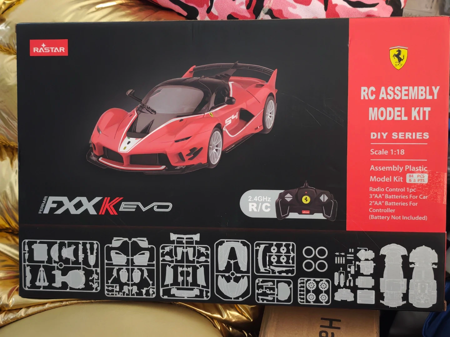 Selling a brand new Rastar Ferrari FXX K EVO RC Assembly Model Kit! It's a DIY series model with a scale of 1:18. The assembly plastic model kit includes 84 pieces. It requires 3 'AA' batteries for the car and 2 'AA' batteries for the controller (batteries not included).