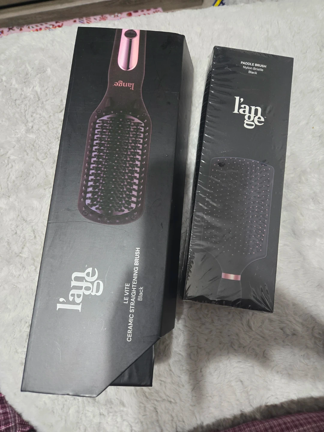 Selling a brand new L'ange Le Vite Ceramic Straightening Brush in black, along with a L'ange Paddle Brush with nylon bristles, also in black! Both come in their original boxes