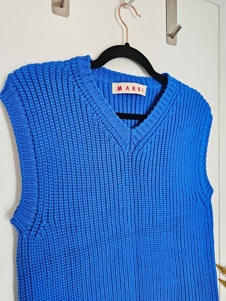 Marni Blue Chunky Knit Boxy Womens Sweater Vest Made In Italy