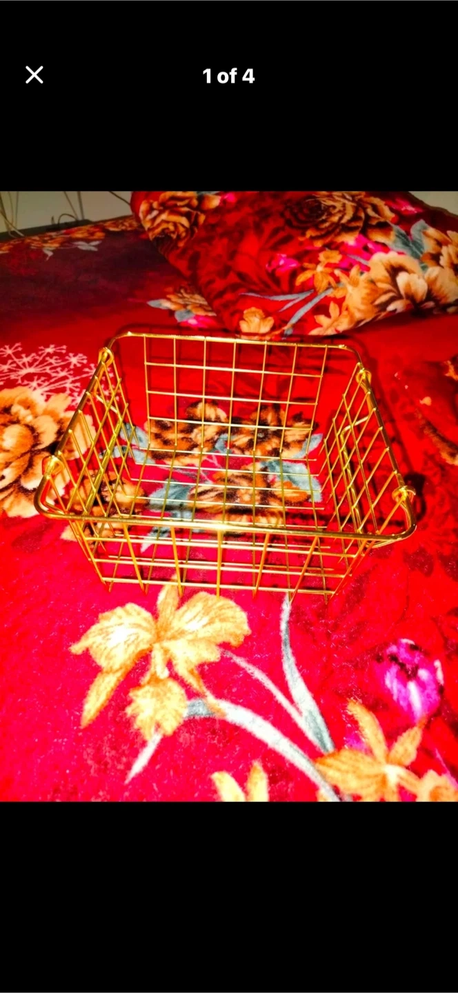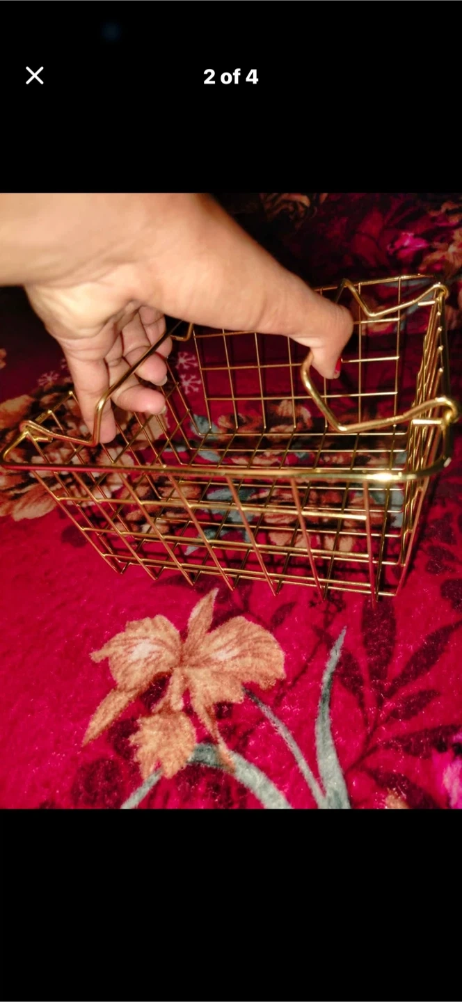 Here's a cute gold wire basket! It's perfect for organizing small items or adding a touch of style to your space. It's in great condition and ready to use