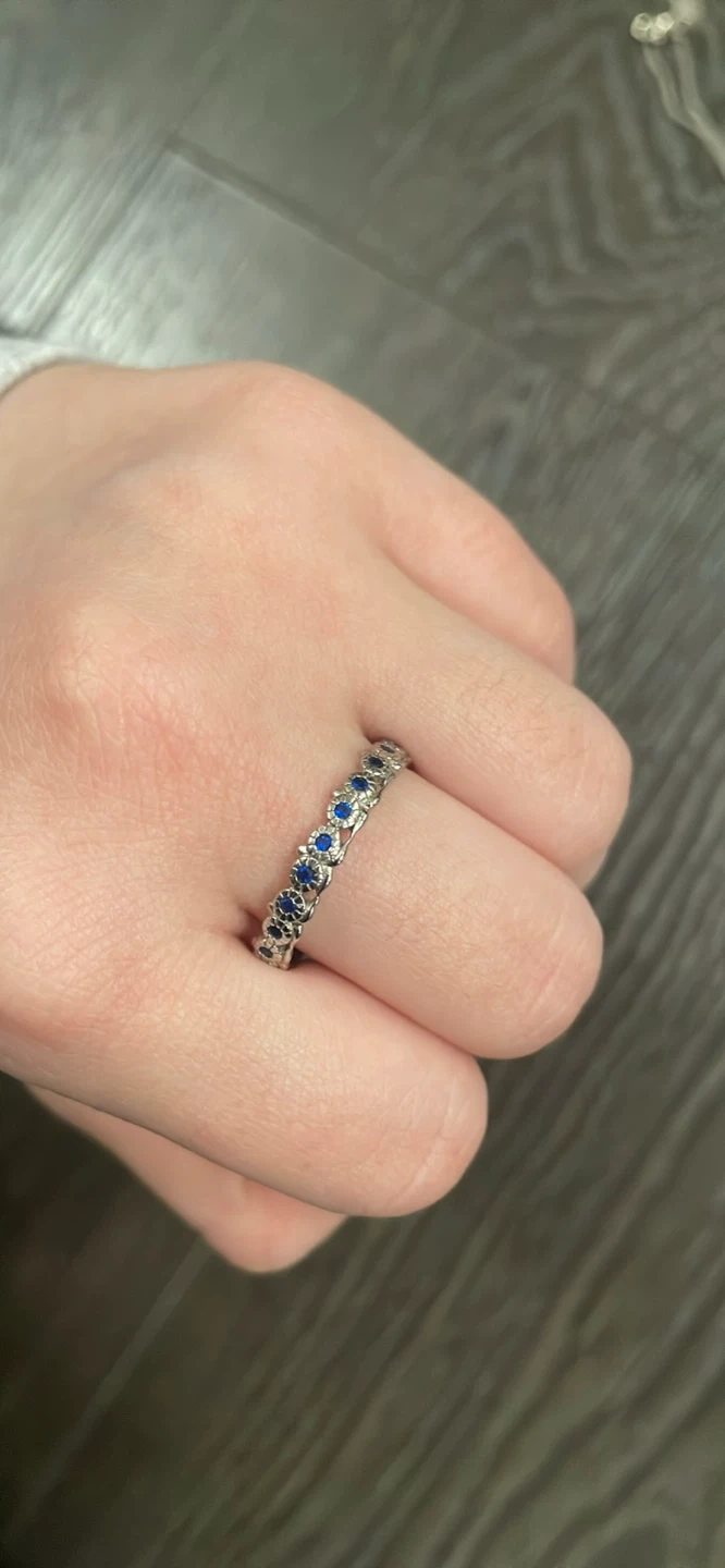 Selling a beautiful silver ring adorned with blue stones. It's in great condition and ready to add a touch of elegance to your collection