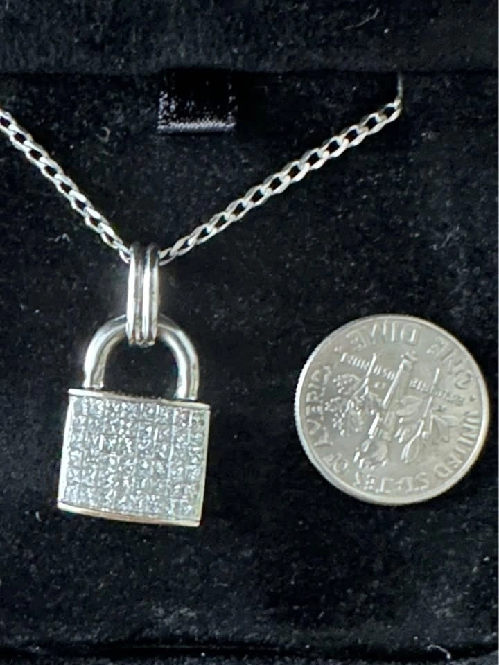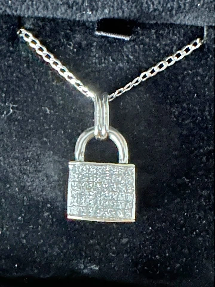Natural Diamonds 14K White gold Lock necklace