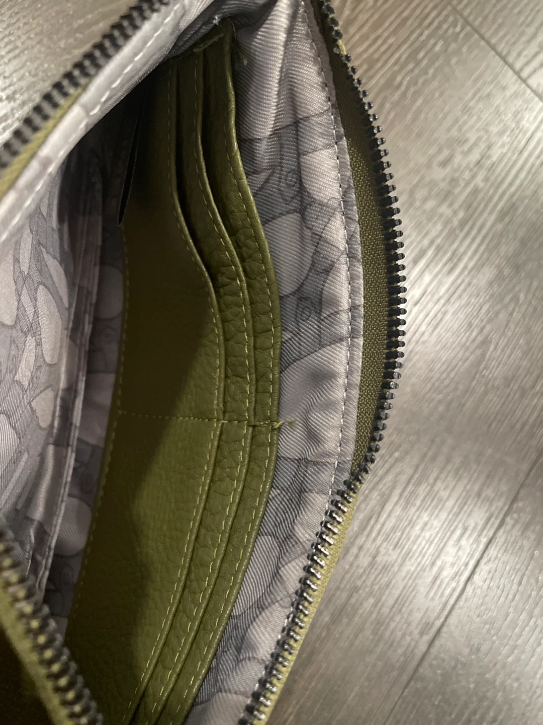 Selling a gently used Aimee Kestenberg wallet in a lovely olive green colour. It's in great condition and has lots of compartments for cards and cash. Perfect for keeping your essentials organized!