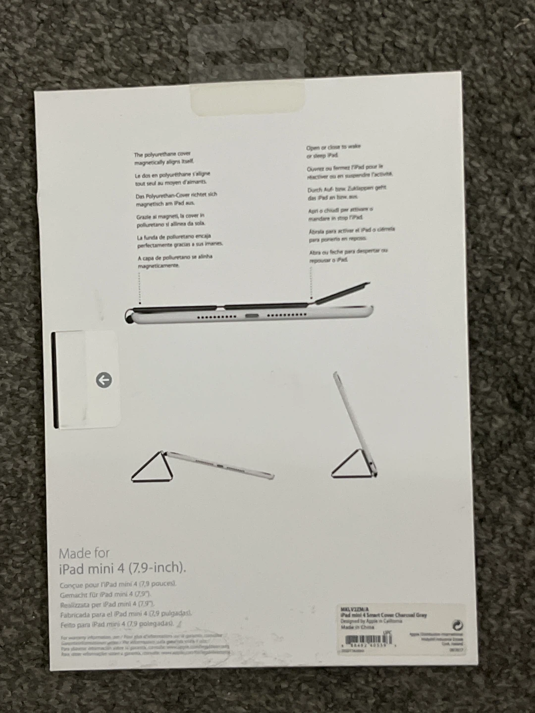 I'm selling a brand new Apple iPad mini 4 Smart Cover in Charcoal Grey! It's still sealed in its original box. It's made for the iPad mini 4 (7.9-inch).