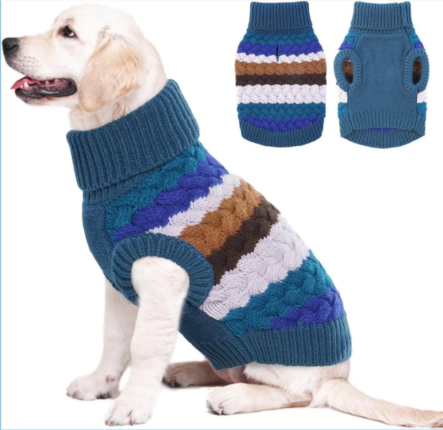 Cozy, stylish dog sweater by Kuoser with a classic cable-knit design. Soft, stretchy, and warm — perfect for fall and winter walks.