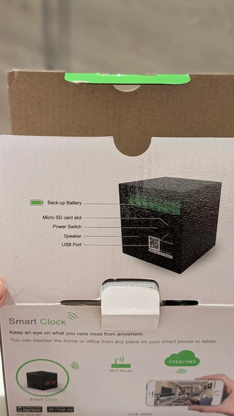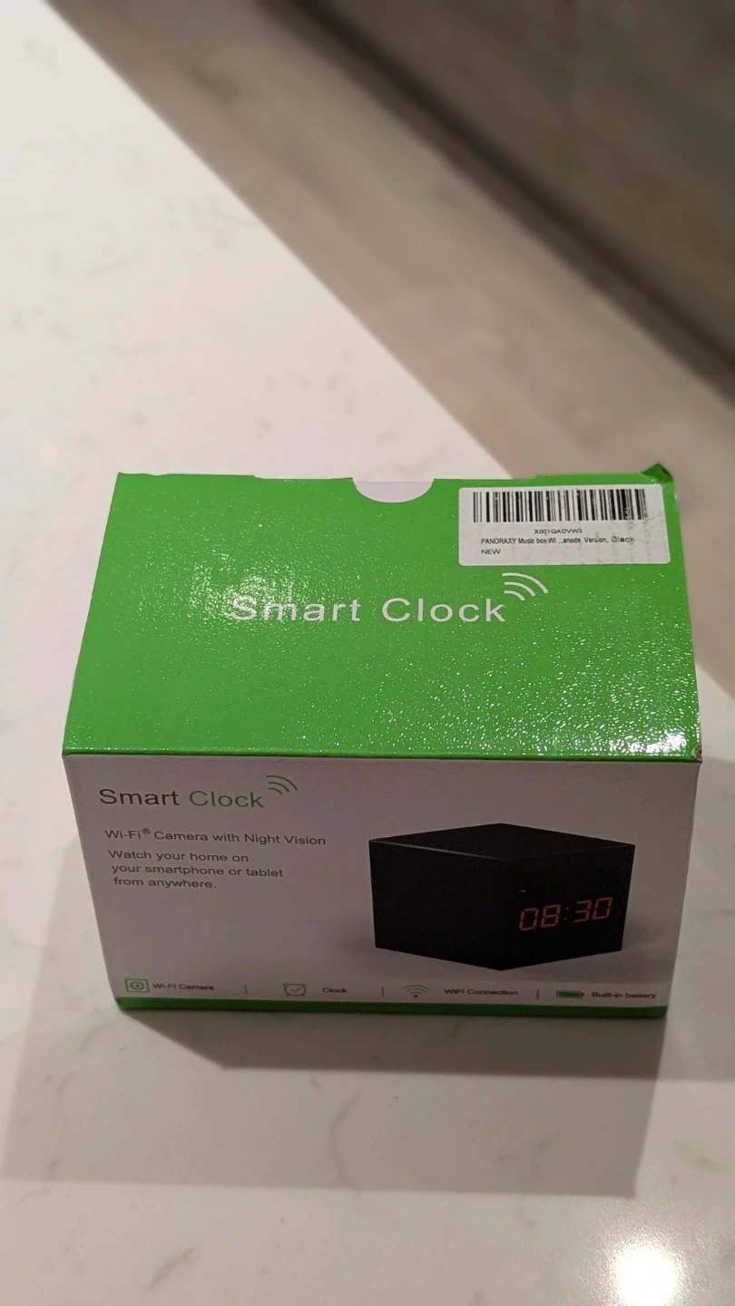Selling a brand new PANORAXY Smart Clock! It's a Wi-Fi camera with night vision, perfect for keeping an eye on things. It features fluent, detailed video and sound, and easy mobile-device setup. The infrared ray lets you see well even when there's little or no light. You can also use it for mobile-device recording and save live video to your smartphone or tablet.