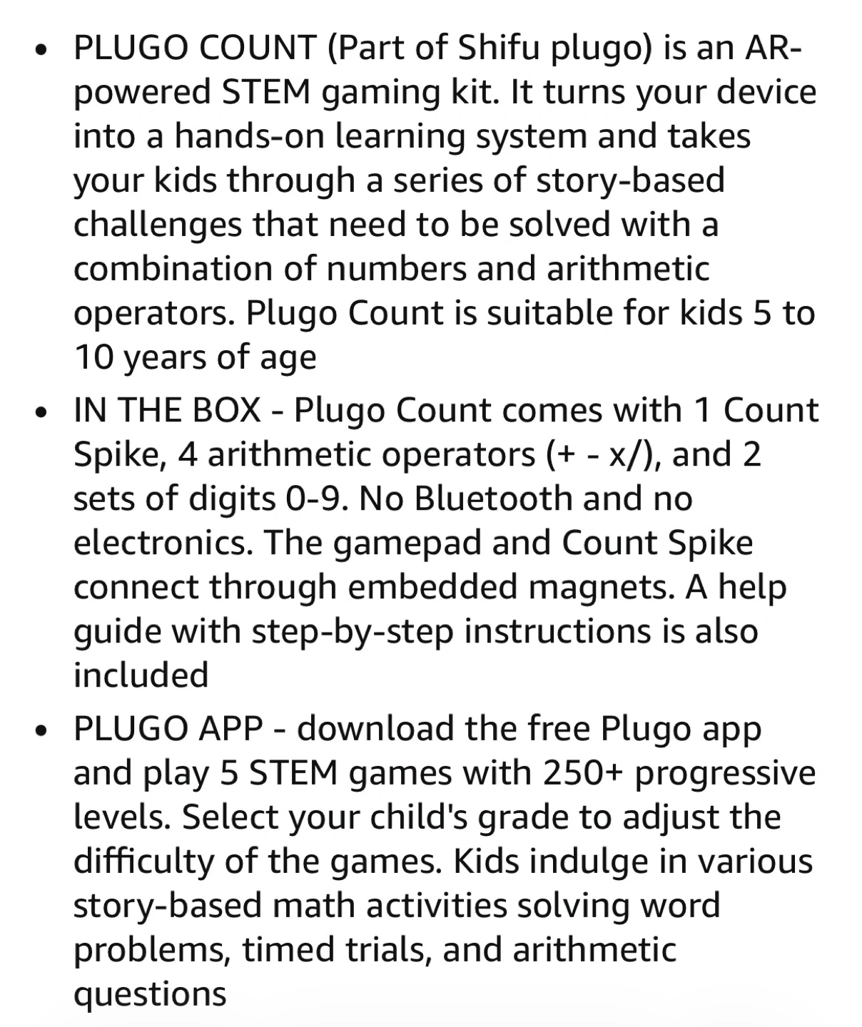 Plugo Count is an augmented reality (AR) hands-on math kit that turns screen time into interactive learning. Designed to help kids build strong number sense and arithmetic skills through fun, story-based games.