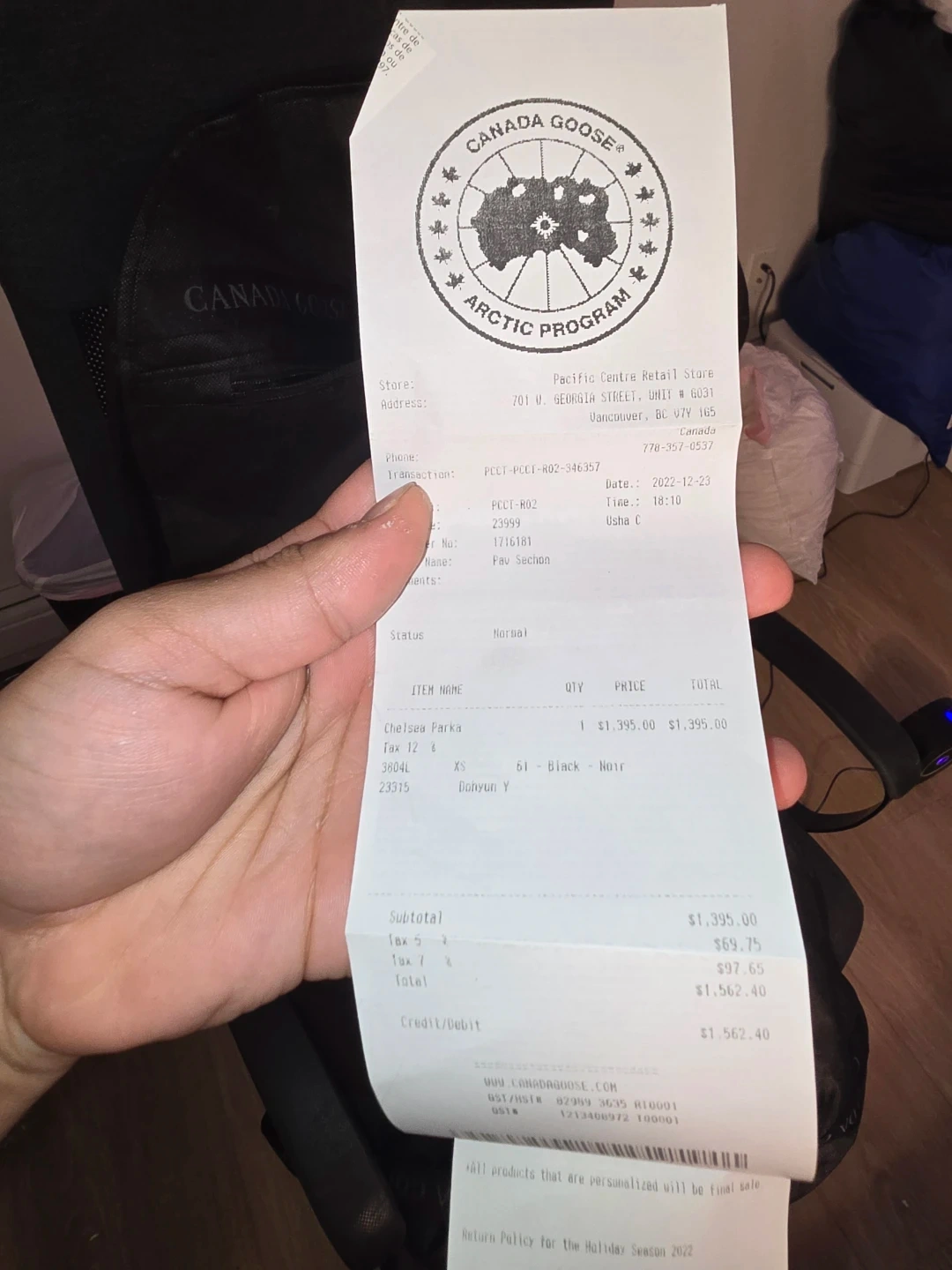 Selling a Canada Goose Chelsea Parka in black, size XS. It comes with the original bag and paperwork. Originally bought for $1,562.40 at Pacific Centre Retail Store in Vancouver. Bought this as a gift, that didn't fit the person and has been sitting in the closet. Mint condition.