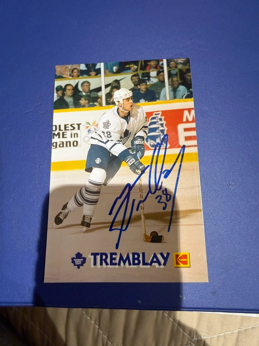 Selling a signed Steve Tremblay Toronto Maple Leafs hockey card. It's in good condition and a great collectible for any Leafs fan!