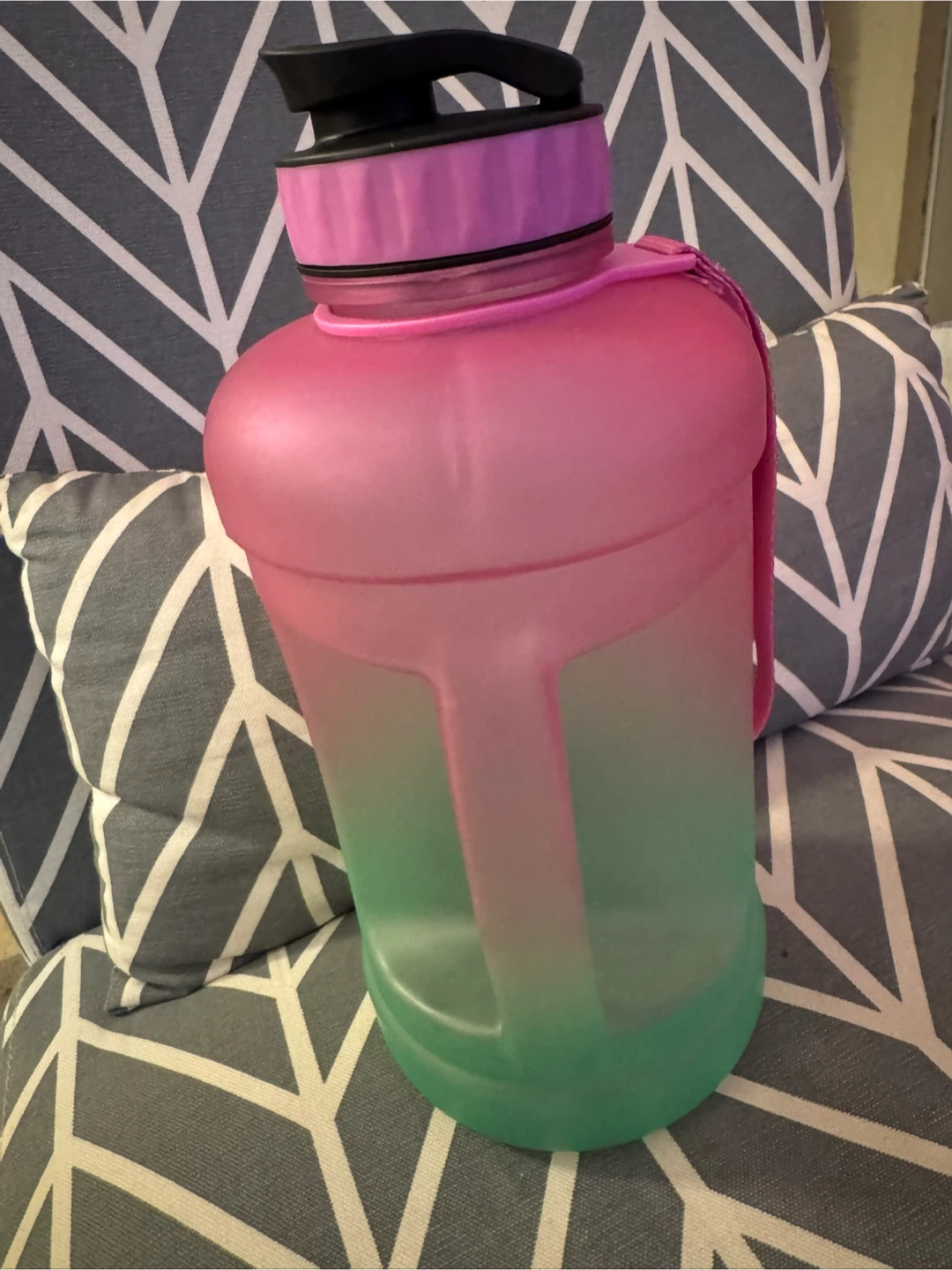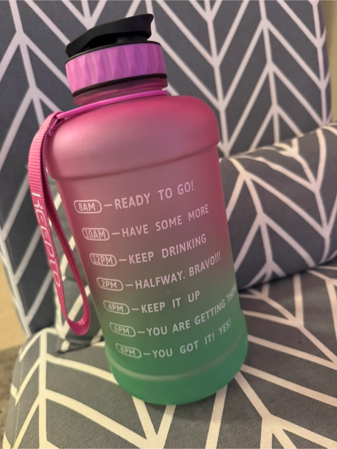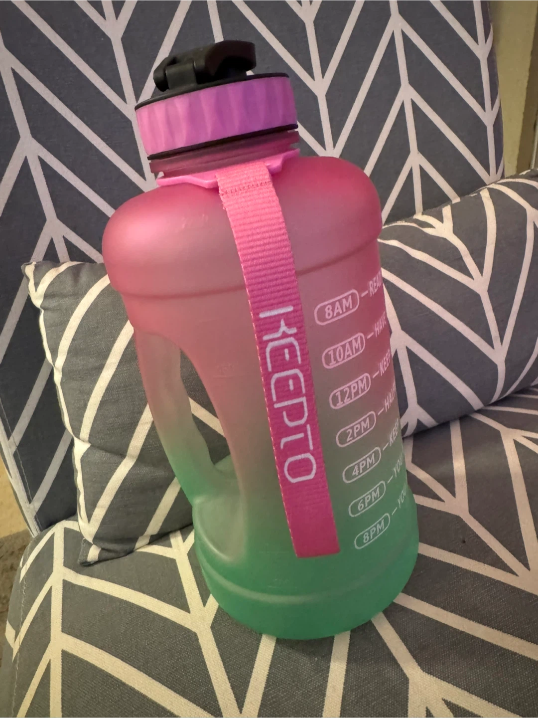 This KEEPTO water bottle is great for staying hydrated throughout the day! It has an ombre design, fading from pink to green. The bottle has time markings to help you track your water intake. Perfect for the gym or everyday use