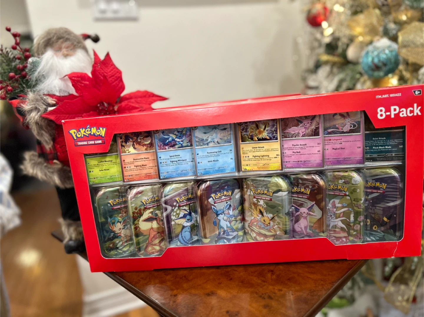 • A Pokémon art card showing the art from this Mini Tin-you can collect and combine all 8!