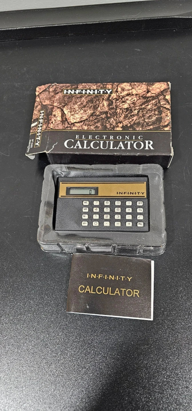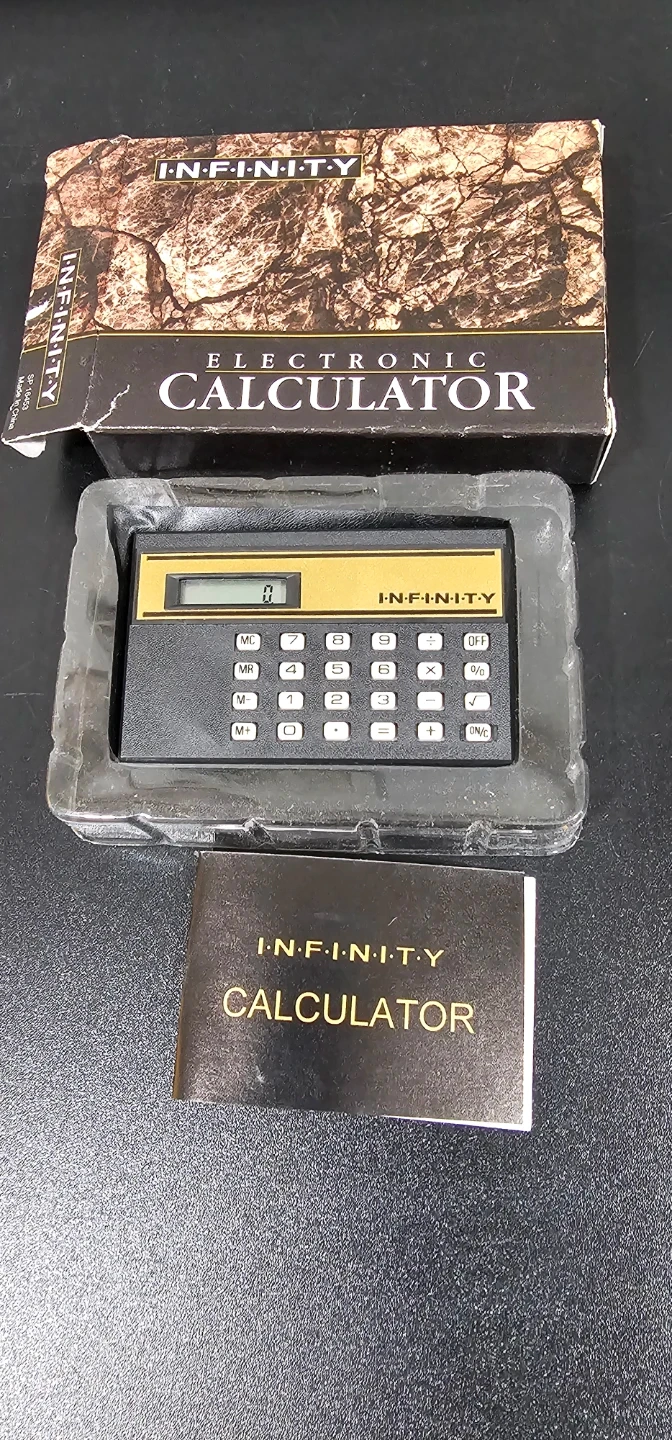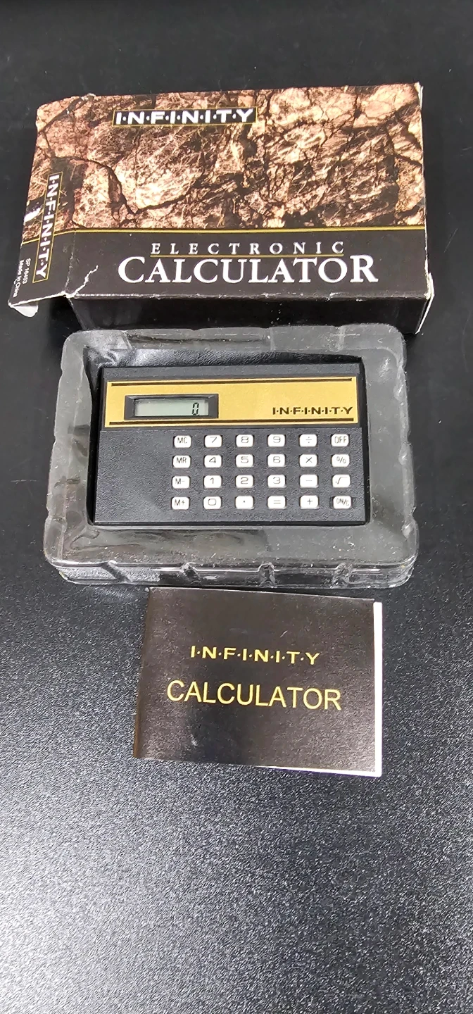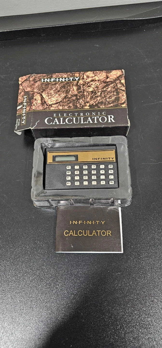 Selling an I·N·F·I·N·I·T·Y electronic calculator. It comes with the original box and the calculator manual. The calculator is in good condition.