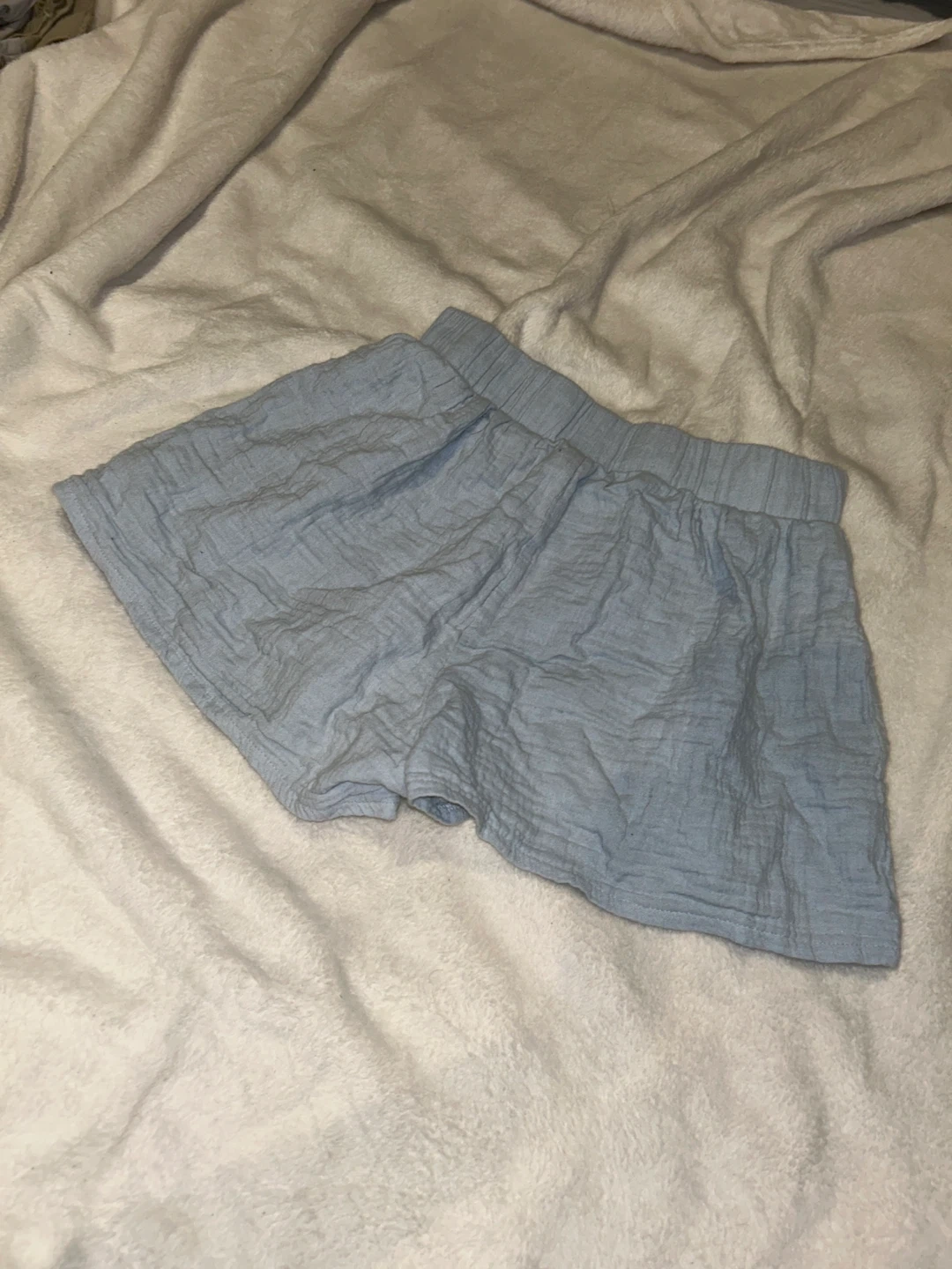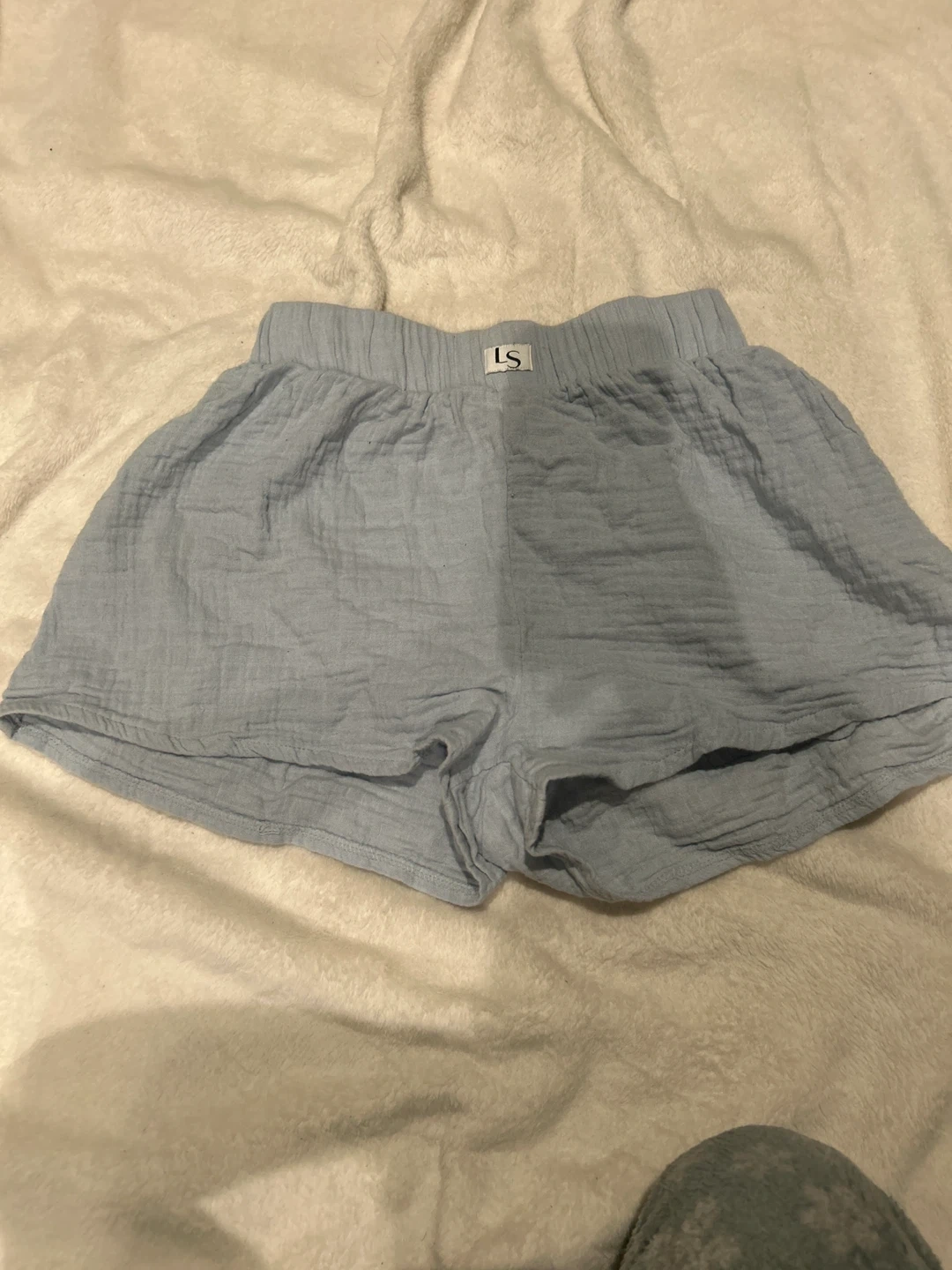 Cute and comfy blue gauze shorts from LS! These are a size small and perfect for lounging or wearing out on a warm day. The material is lightweight and breathable, making them super comfortable for everyday wear