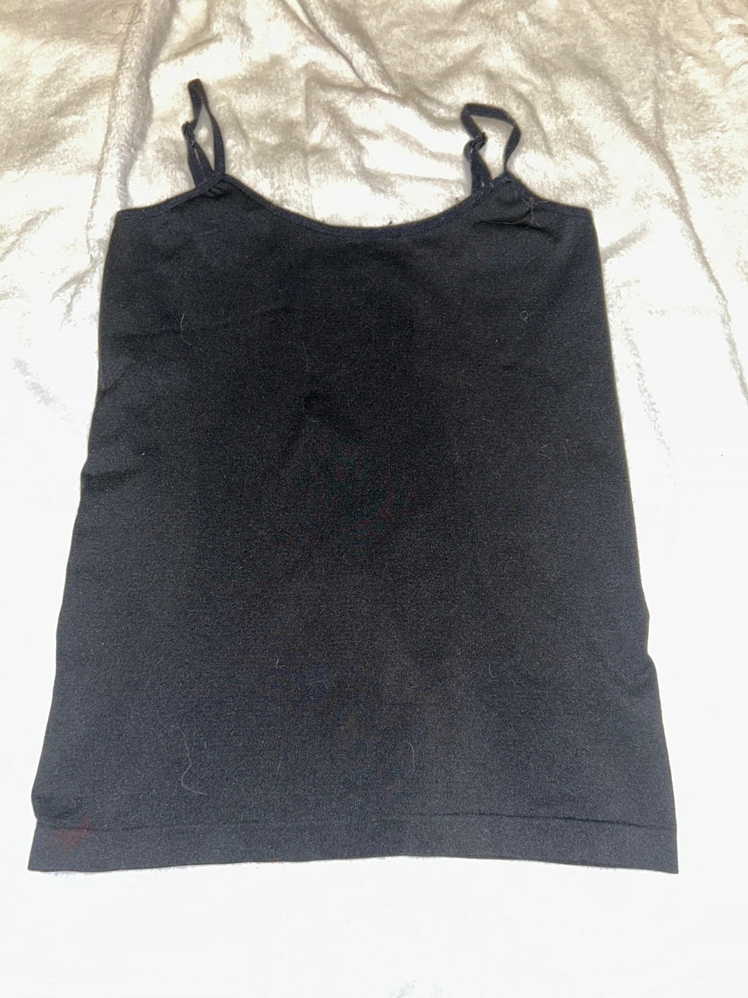 Selling a black tank top. It's in used condition, as shown in the pictures. It would be great for layering or wearing on its own during warmer weather