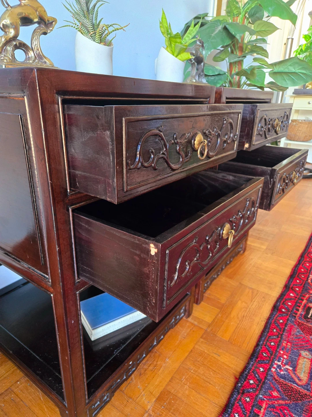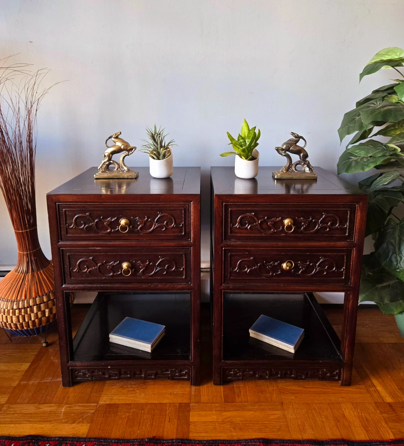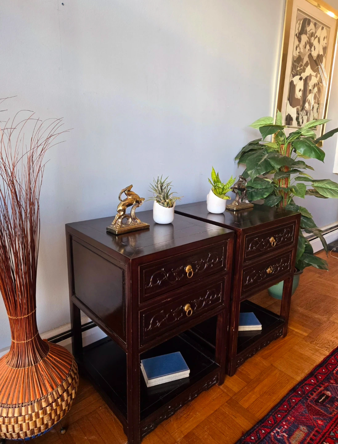 Pair Of Hand Carved Nightstands With 2 Drawers (For Both)