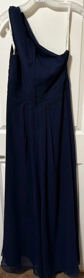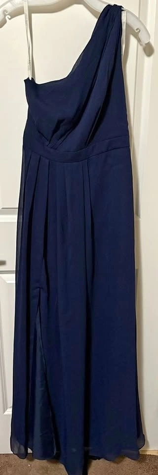 David's Bridal Long One-Shoulder Chiffon Dress - Size 8 - Navy