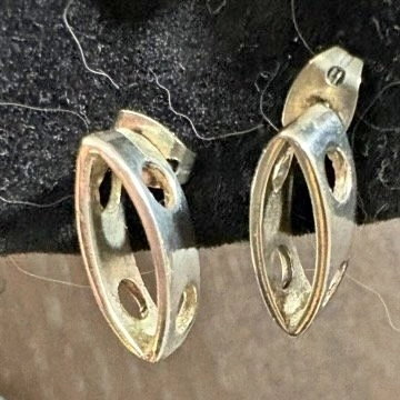 Modern sterling silver sculptural stud earrings with an open oval design.
