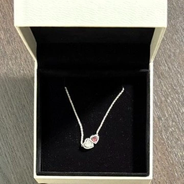 The Halo Hearts Pendant Necklace features radiant connected hearts adorned with a dazzling red man-made crystal and a sparkling clear cubic zirconia. Adjustable to three lengths, it’s a beautiful piece for any occasion and makes a lovely gift.