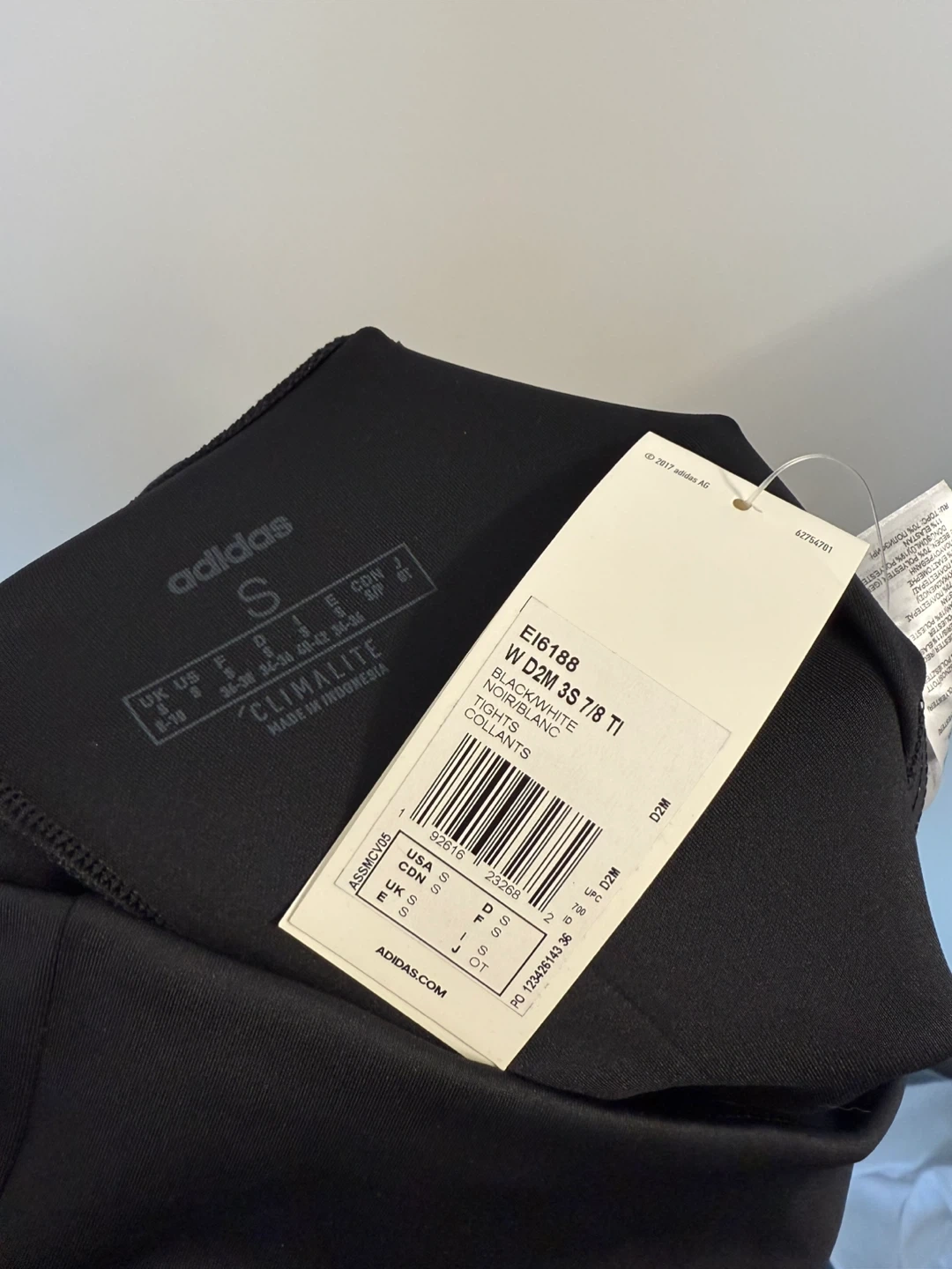 Selling a pair of Adidas W D2M 3S 7/8 tights in size small. They are black and white and feature Climalite technology. Girl, kids leggings for 7/8 year old.