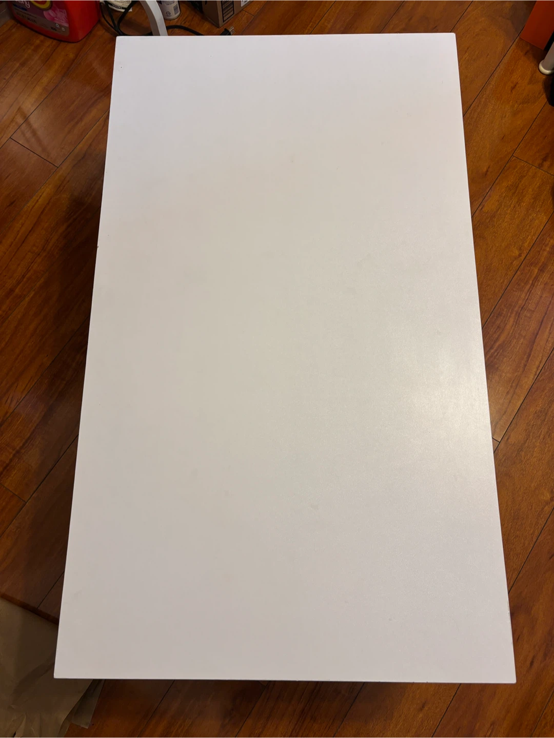 Selling a stylish coffee table that features a clean white top and light wood-look drawers (great amount of storage space).