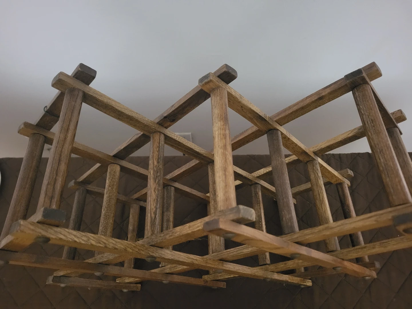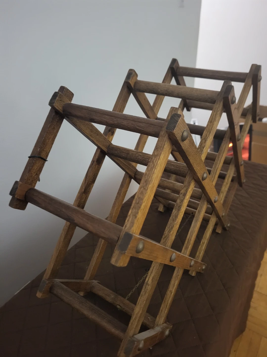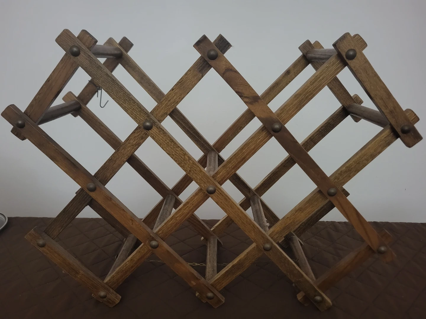 Here's a lovely wooden wine rack! It's expandable, so you can adjust it to fit your needs. It's in great condition and ready to hold your favourite bottles of wine. Can hold 8 bottles and it can fold !