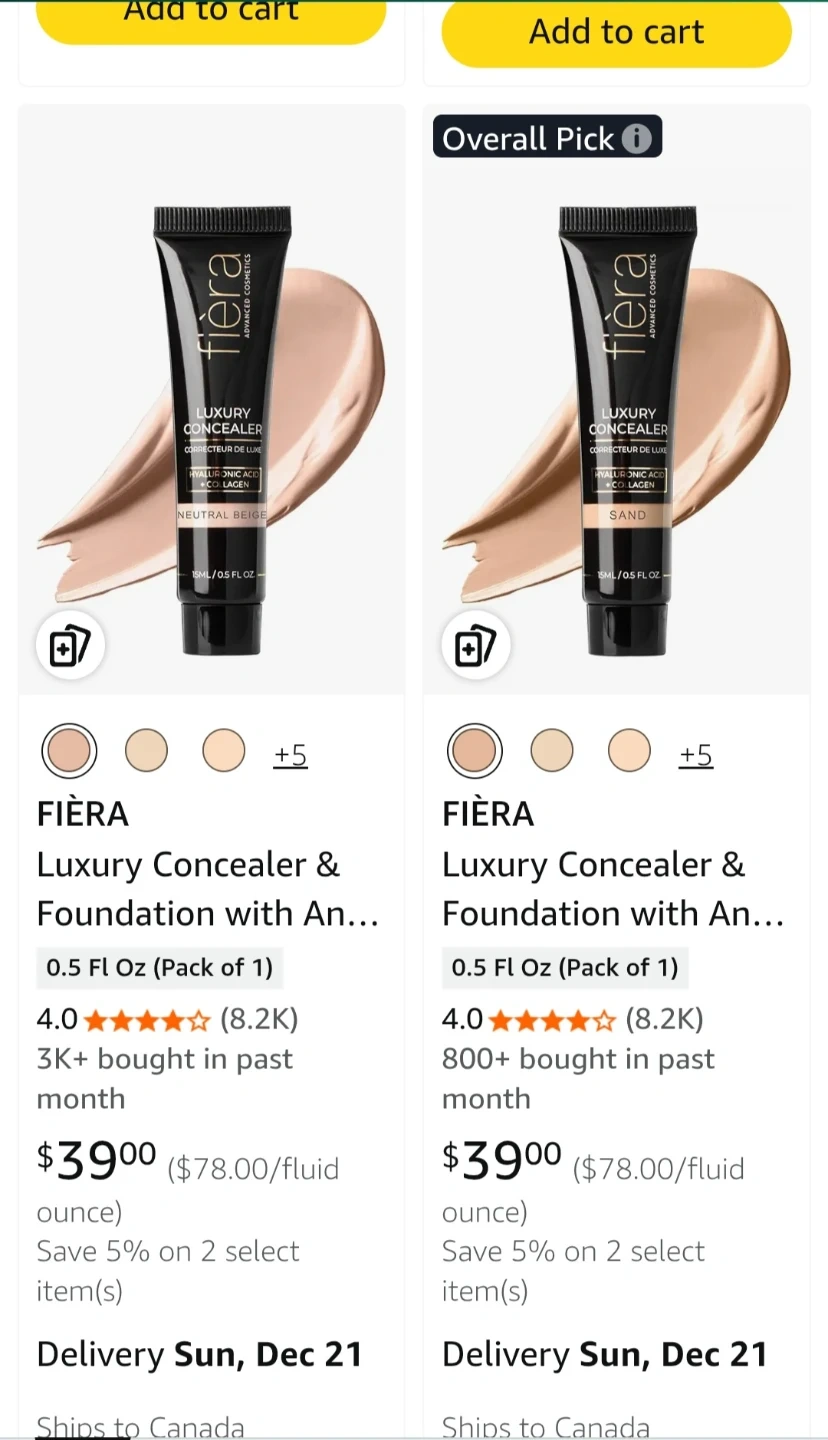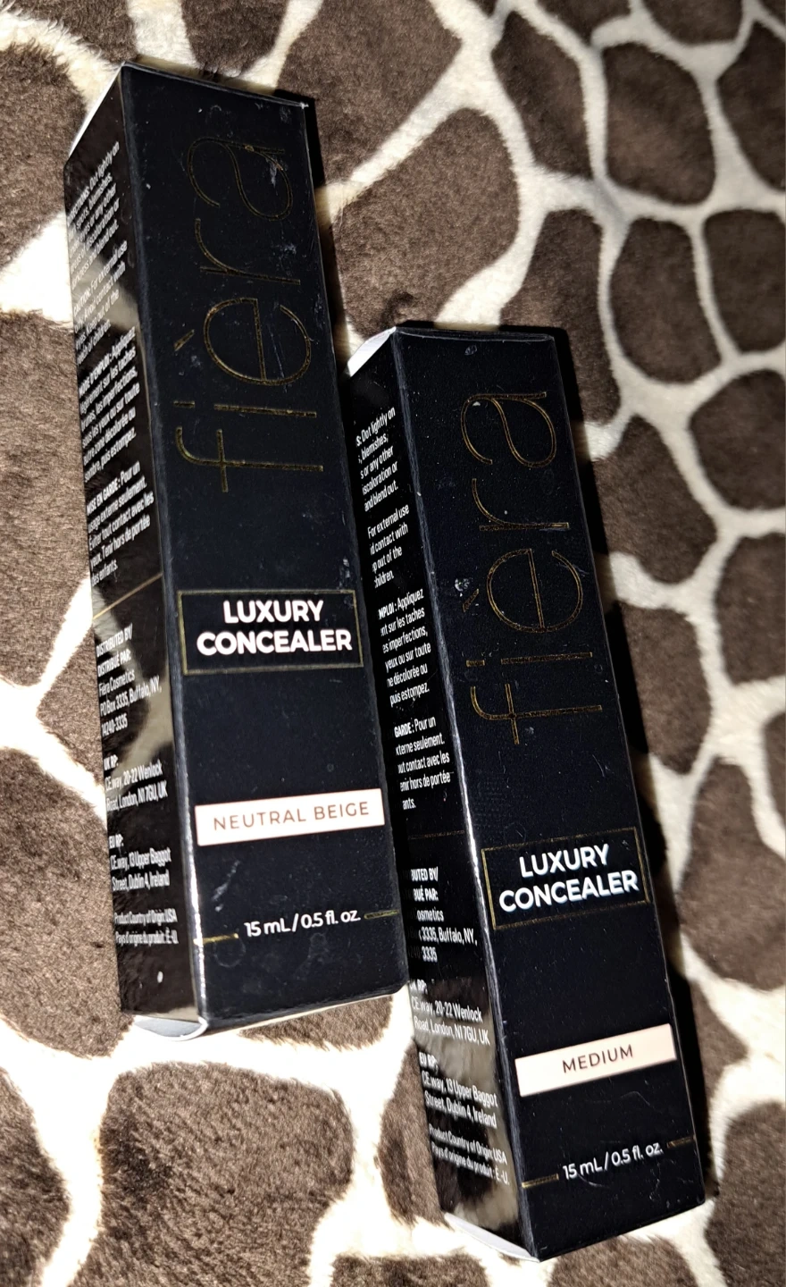 Selling two Fièra Luxury Concealers, one in Neutral Beige and one in Medium. Both are 15 ml / 0.5 oz. They're perfect for concealing dark circles, blemishes, or any other discoloration or darkness and blend out. Originally bought for $39 each!