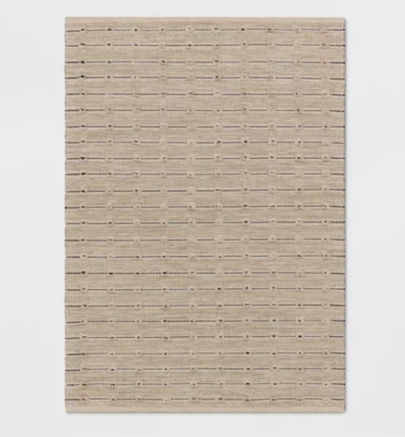 Selling a Threshold woven flatweave rug! This rug features a stylish stripe pattern and a neutral color palette that can complement any room decor. It's perfect for adding texture and warmth to your space