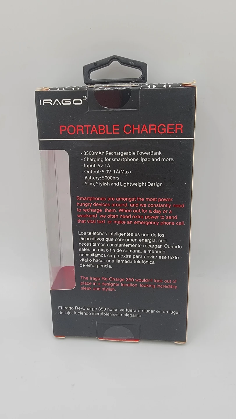 Stay powered when you need it most with this IRAGO Re-Charge 350 portable charger. Compact, lightweight, and easy to carry — perfect for emergency backup, travel, or daily carry.