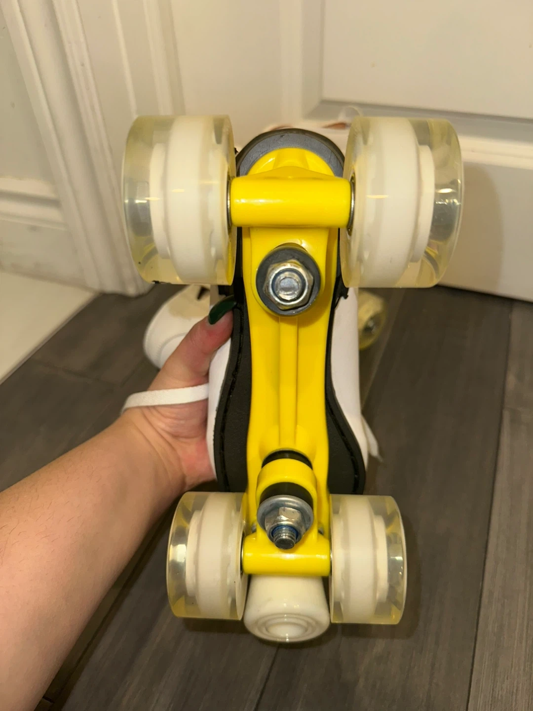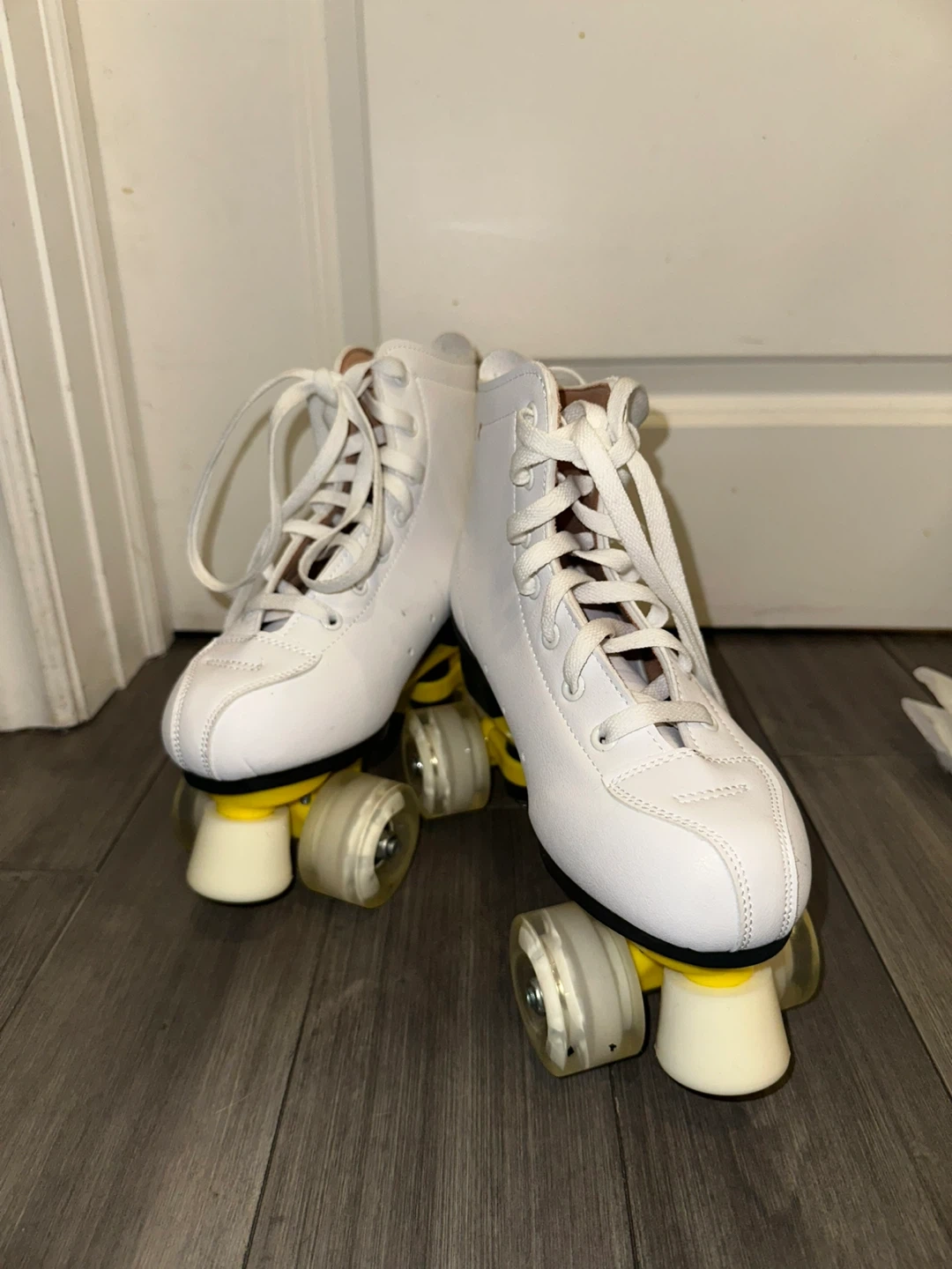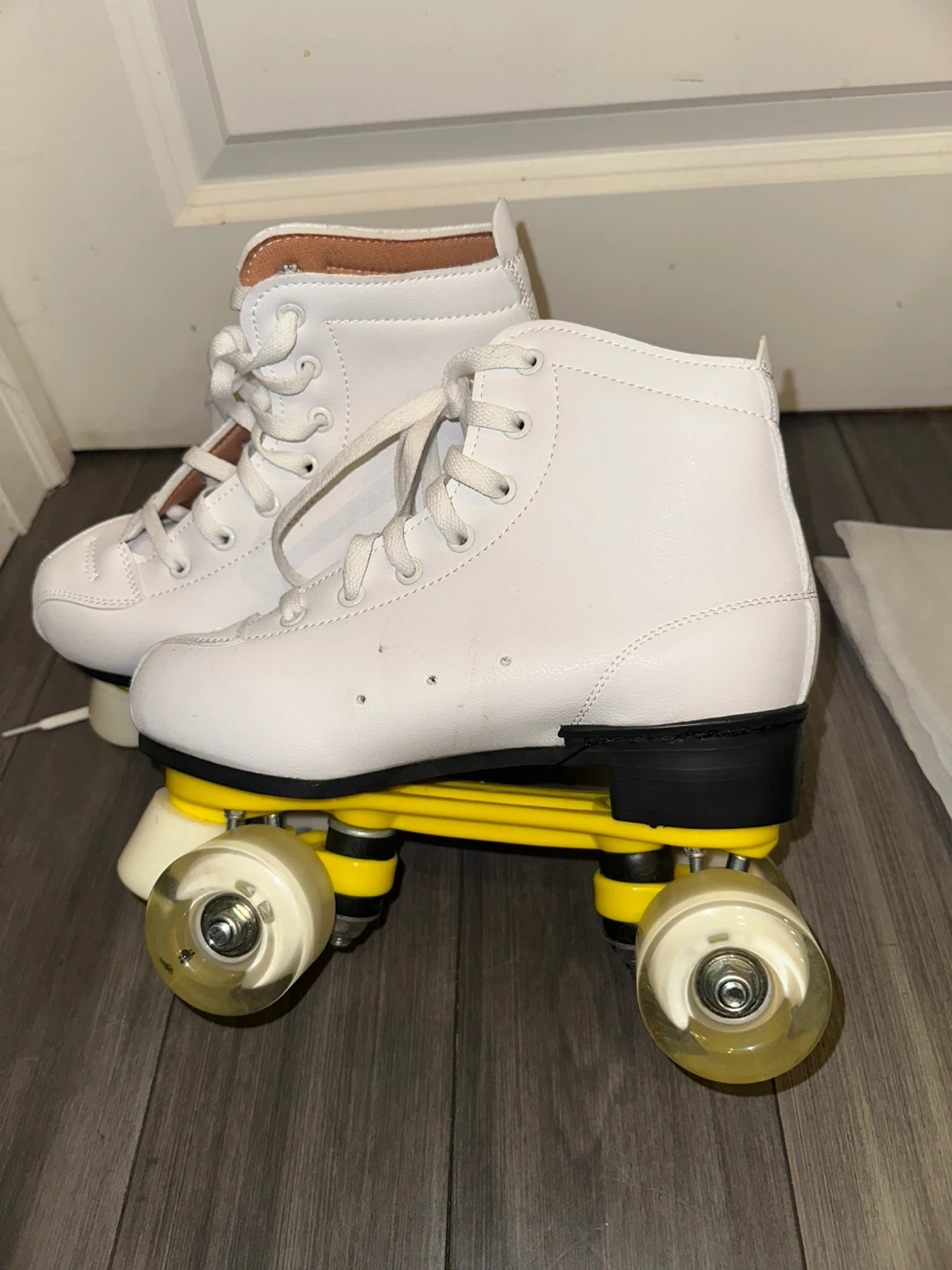 Selling a pair of white roller skates!