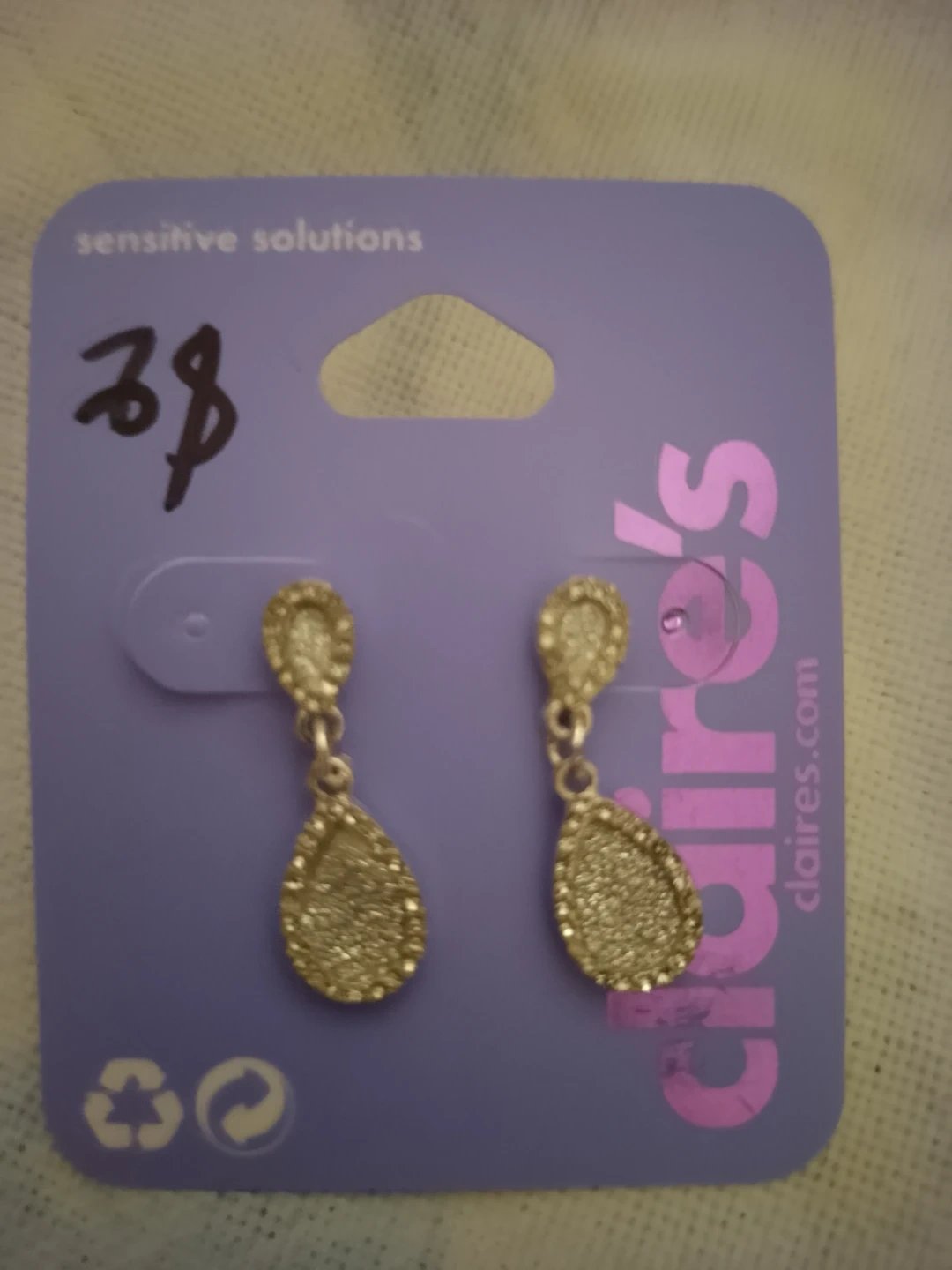 These are a pair of sparkly dangle earrings from Claire's. They're new on the card, never been worn!