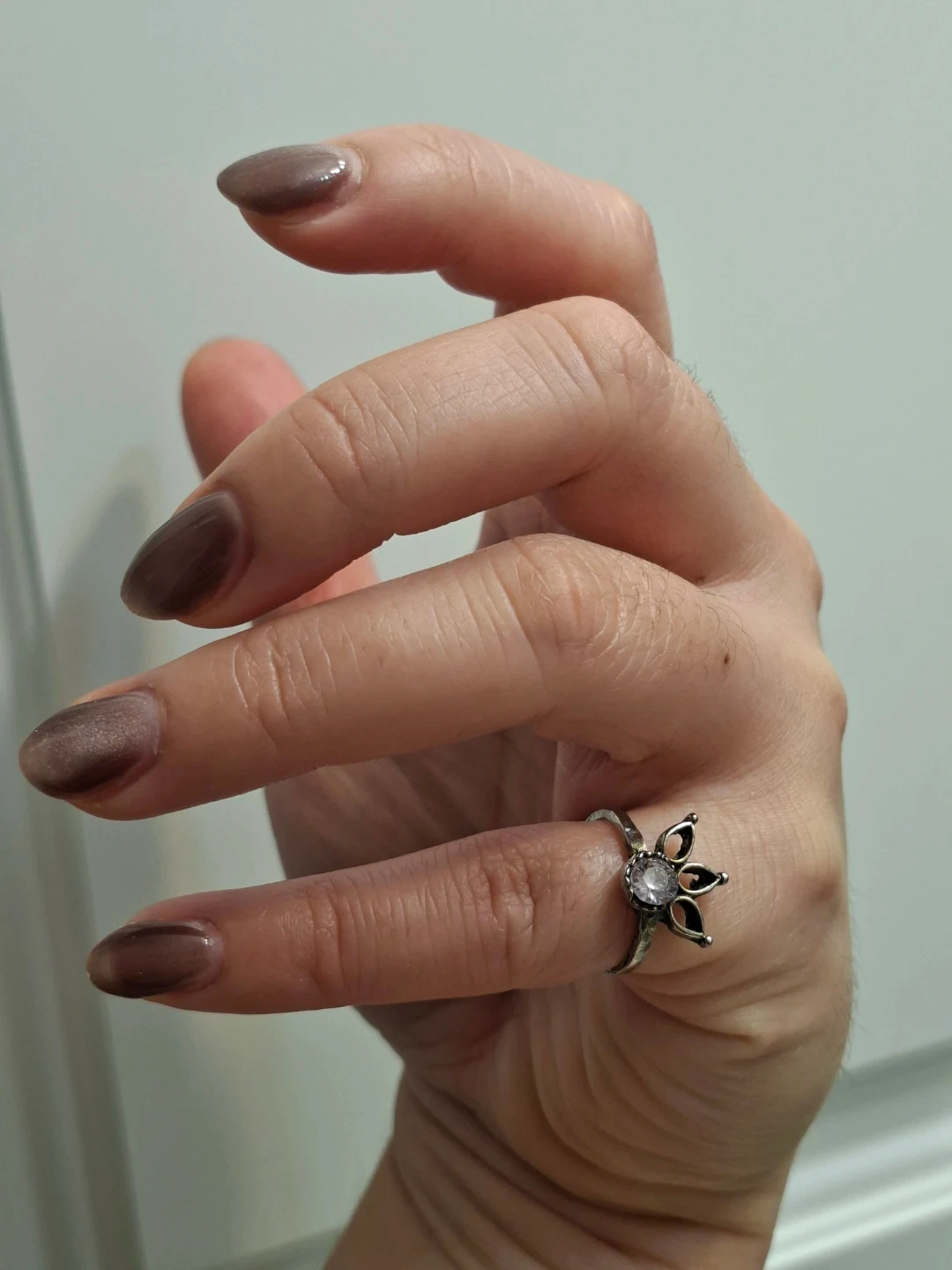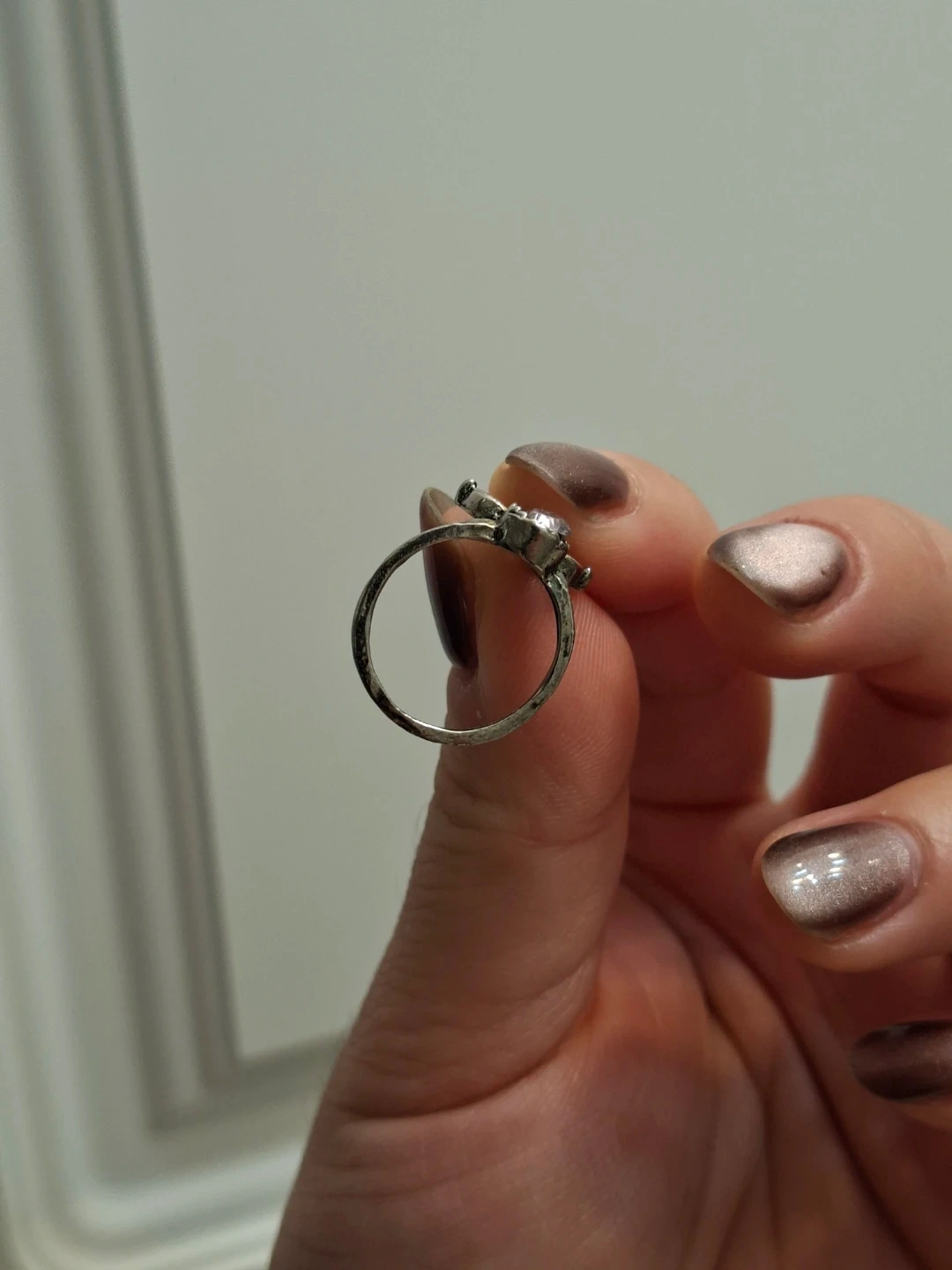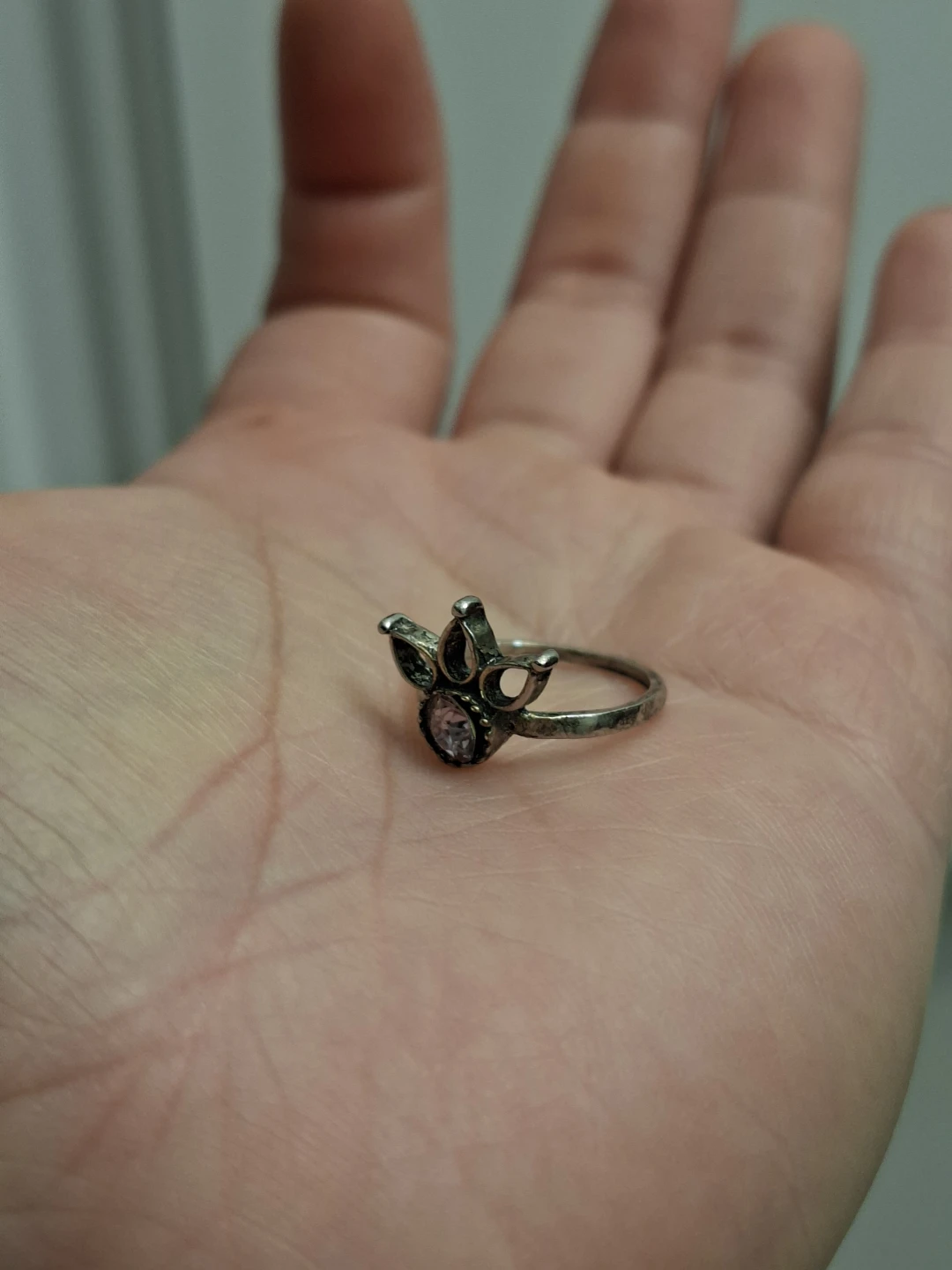 Selling a cute silver ring with a flower design and a small stone in the center. Just polished the silver.