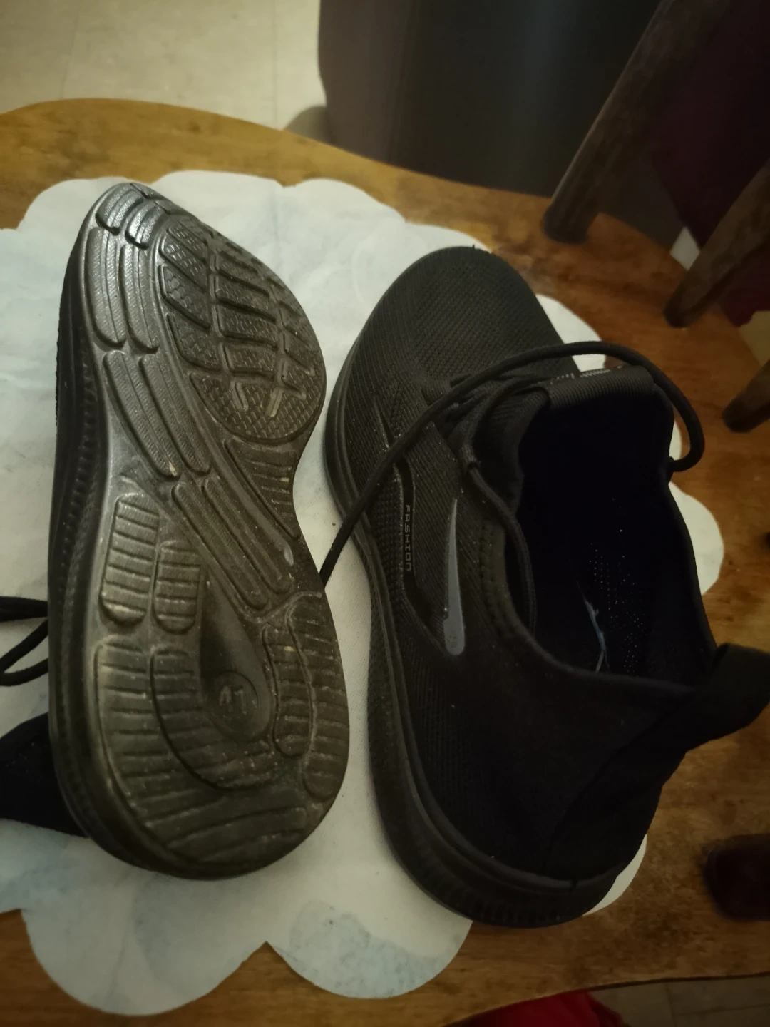 Selling a pair of black sneakers, marked as size 41. They appear to be in good condition. Please check the photos for details!