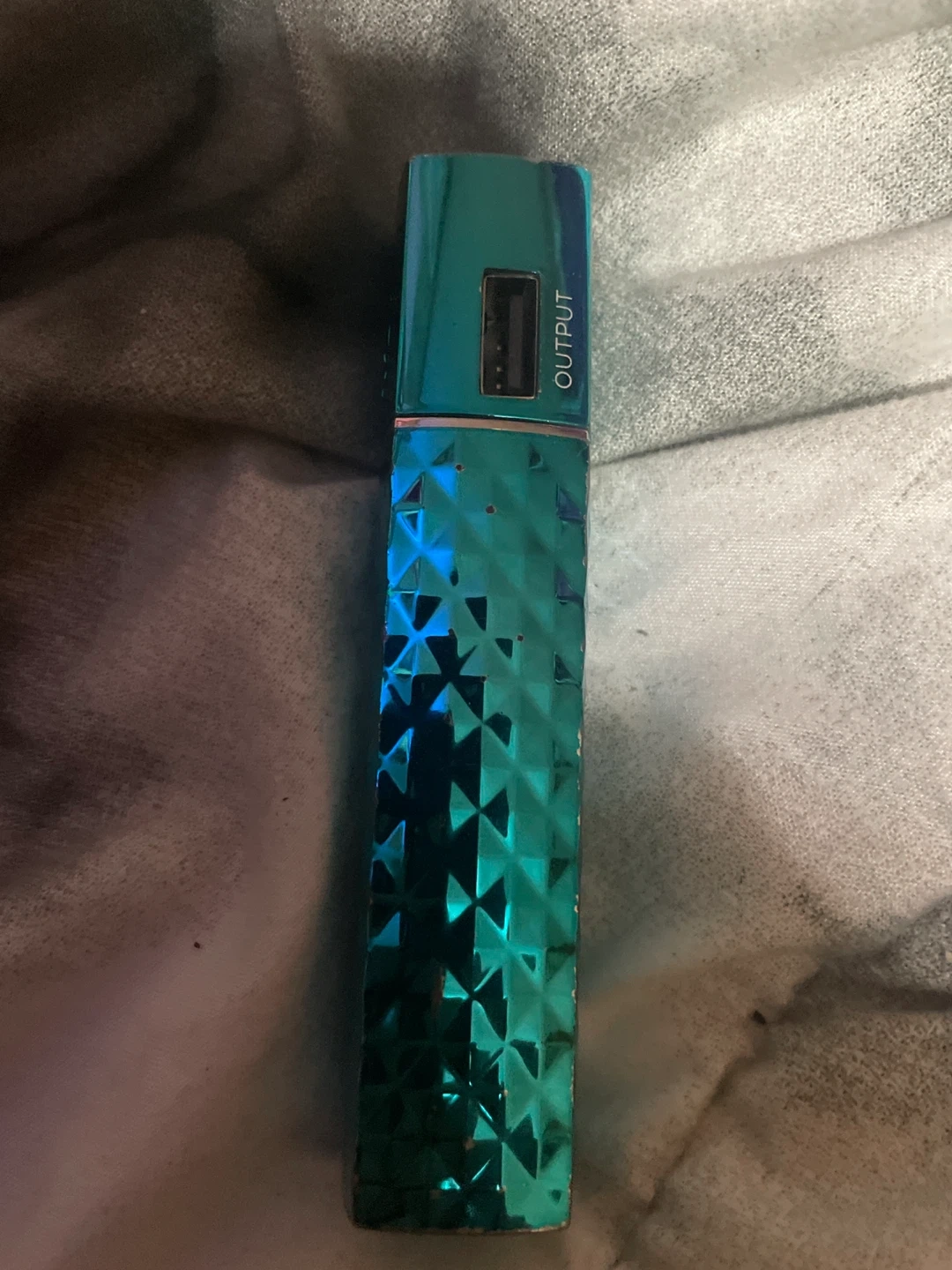 Selling a Hipstreet portable charger in a nice teal colour. It has a cool geometric pattern on it. Perfect for charging your phone on the go!