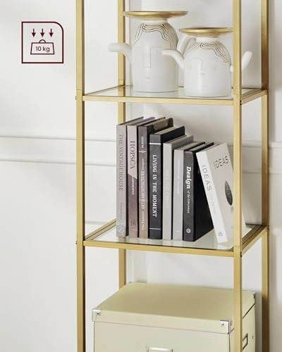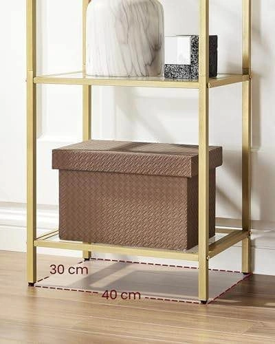 VASAGLE 5-Tier Tempered Glass Shelf – Metallic Gold | New in Box