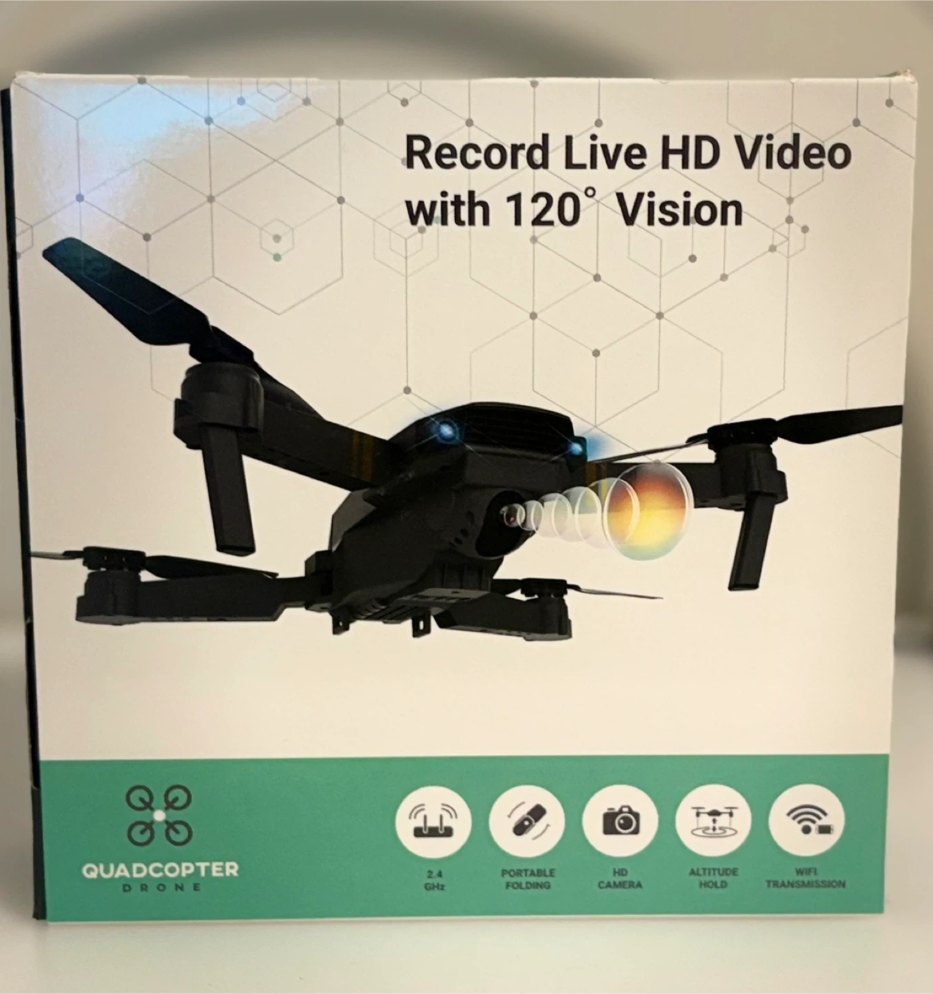 Selling a quadcopter drone. It records live HD video with 120° vision. It is portable and folding with altitude hold and wifi transmission. Included is the box and remote. Just used it for one month. I’m selling it because I don’t use it anymore. No scratches on it.