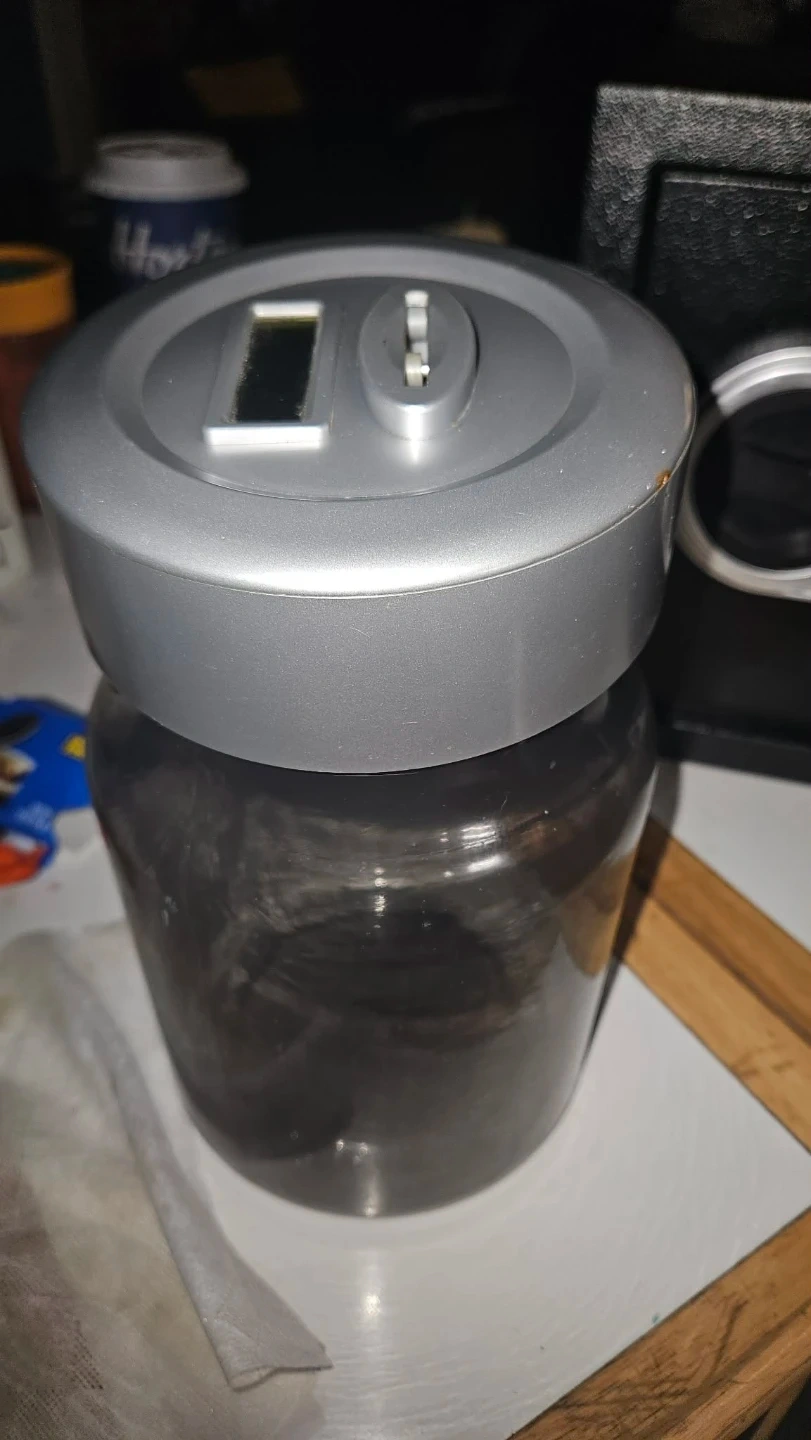 Selling a digital coin counter jar! It's in great shape and ready to help you keep track of your savings. Perfect for anyone who likes to collect coins and wants an easy way to count them