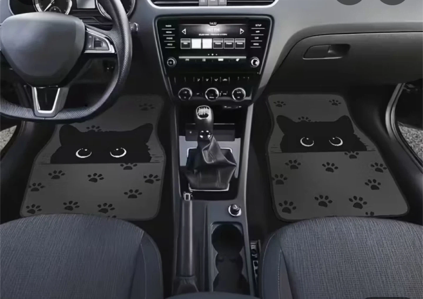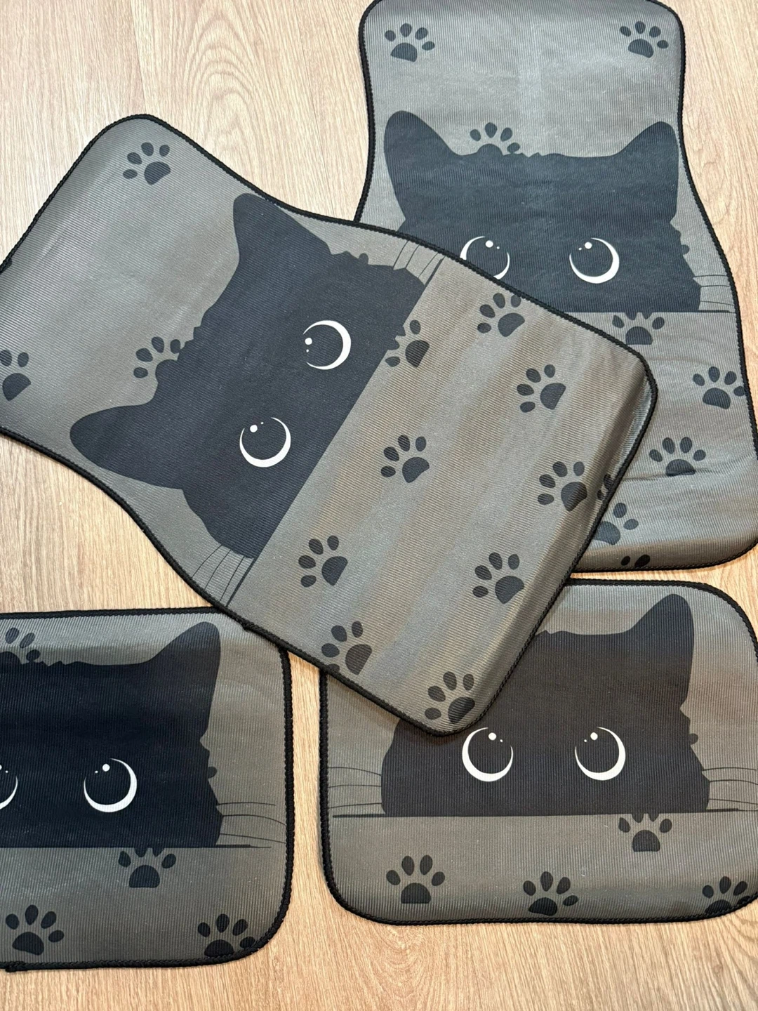 Looking to add a bit of feline fun to your car? I'm selling a set of four car floor mats featuring a cute cat design! They're in great shape and ready to be used.