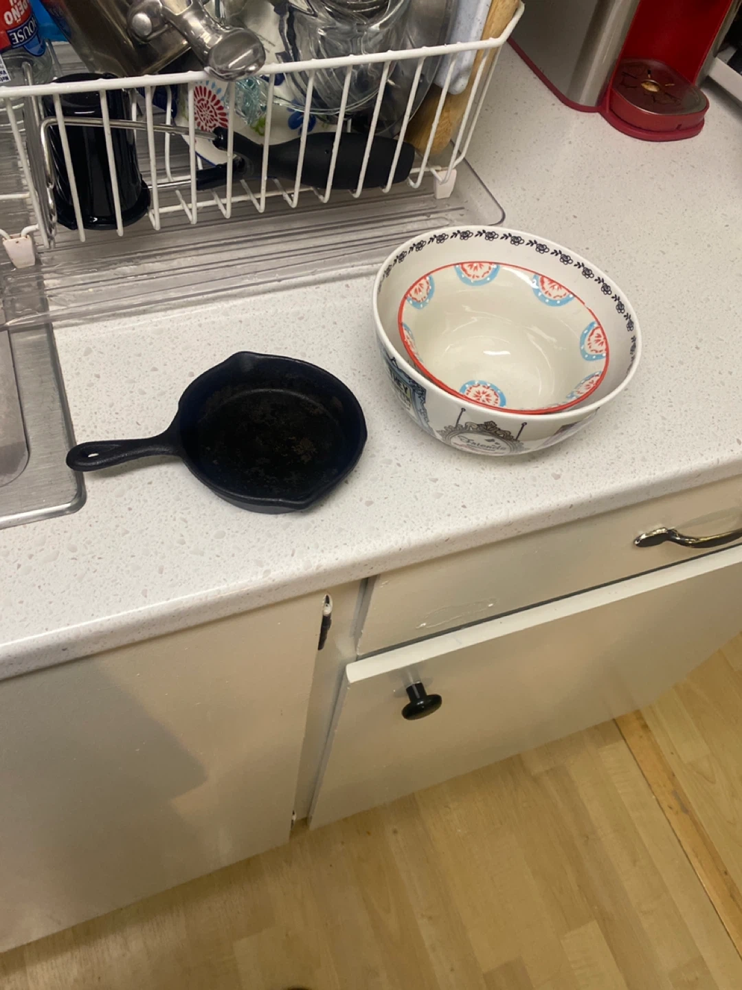 Selling a used cast iron skillet. It shows signs of use, but still has plenty of life left! Great for cooking up your favourite dishes.