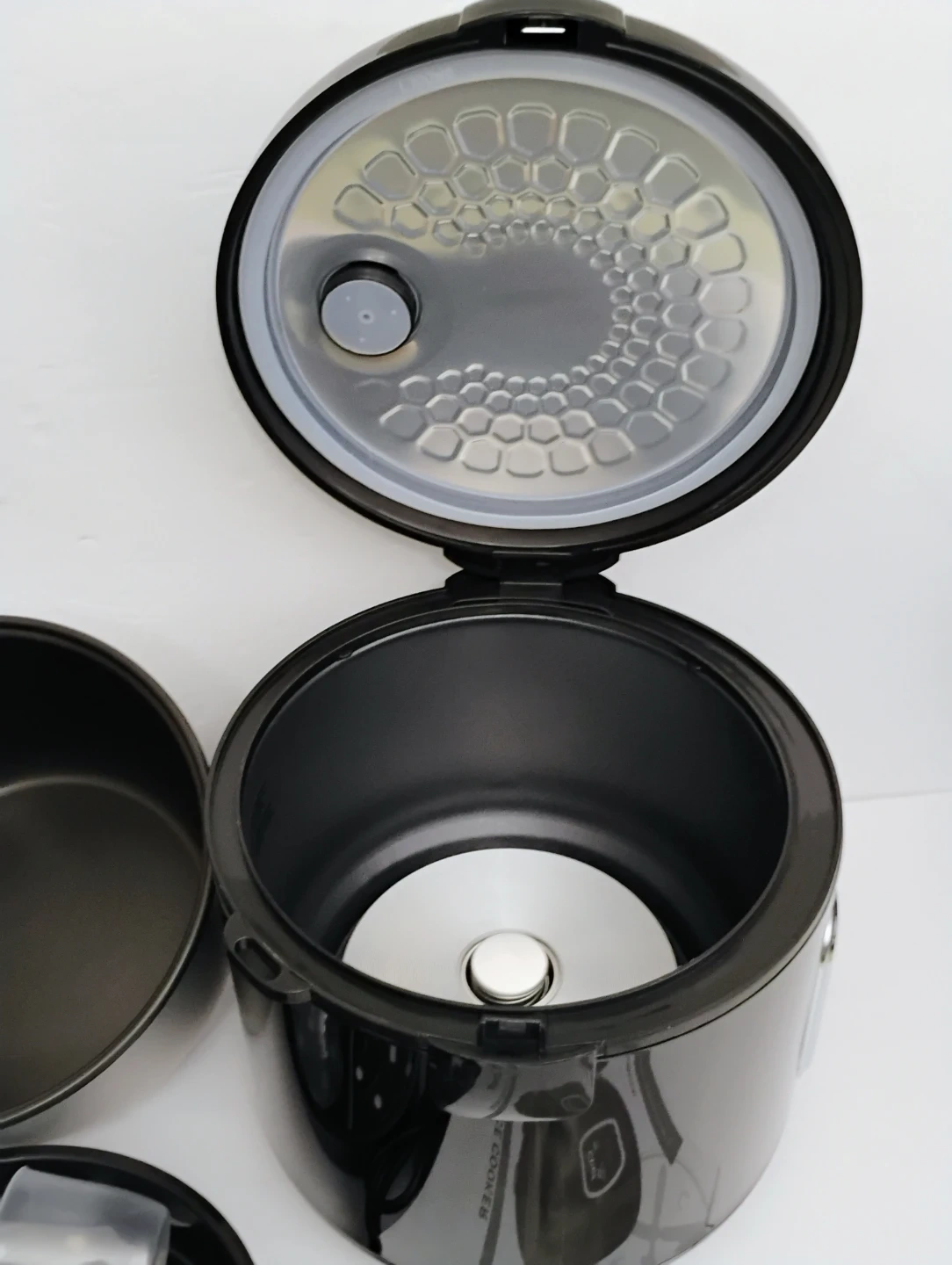 Model : 043-2756-8, Color black . Includes Cooking pot , steamer basket, measuring cup, serving paddle and manuals . No box though.