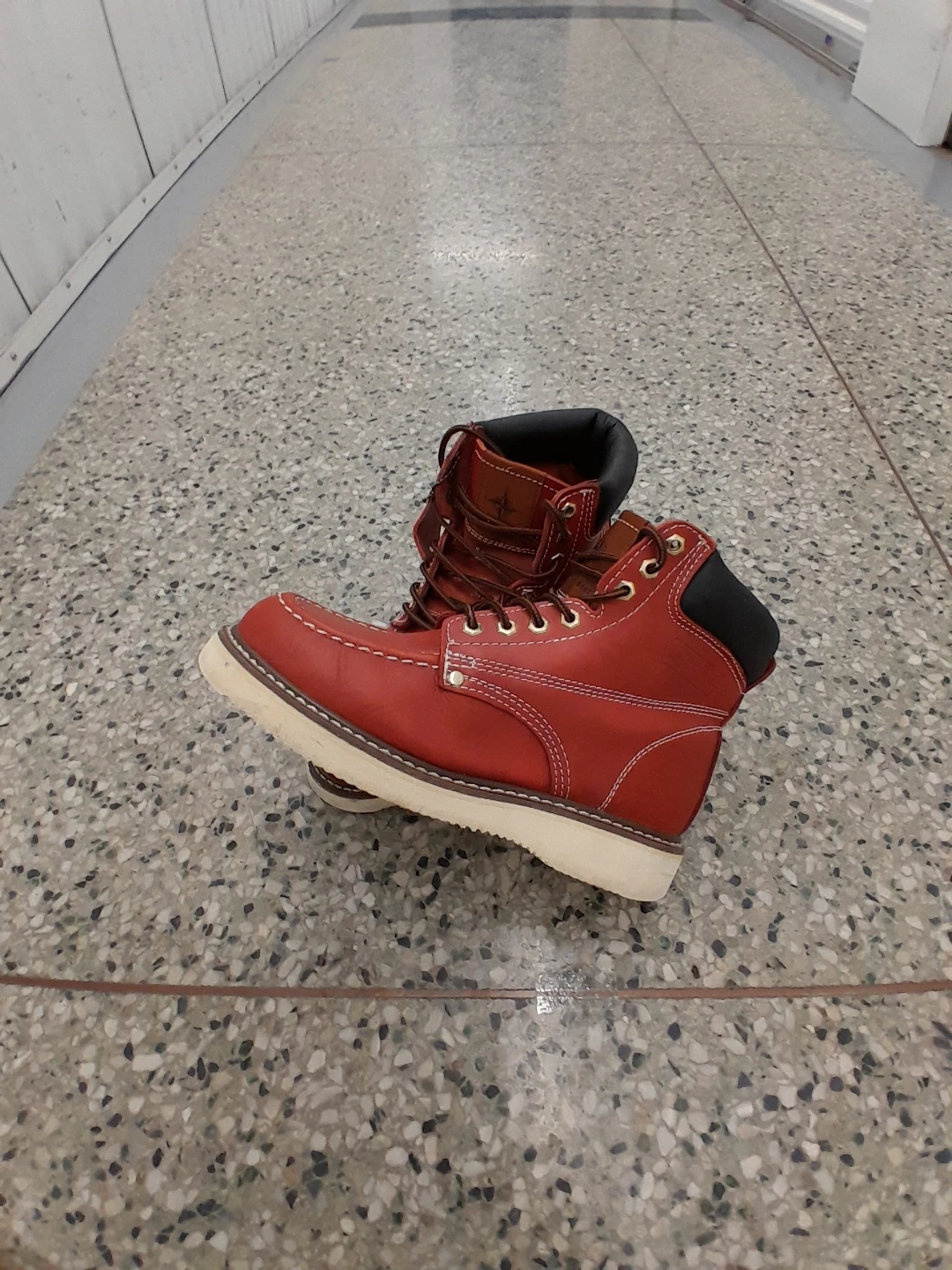 Red leather artic boots. They look to be in great condition The soles are in great shape and the leather is a vibrant red colour Size 9