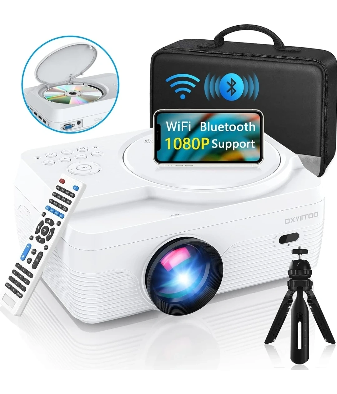 Full HD WiFi Bluetooth Projector w/ Built-In DVD Player – 250”