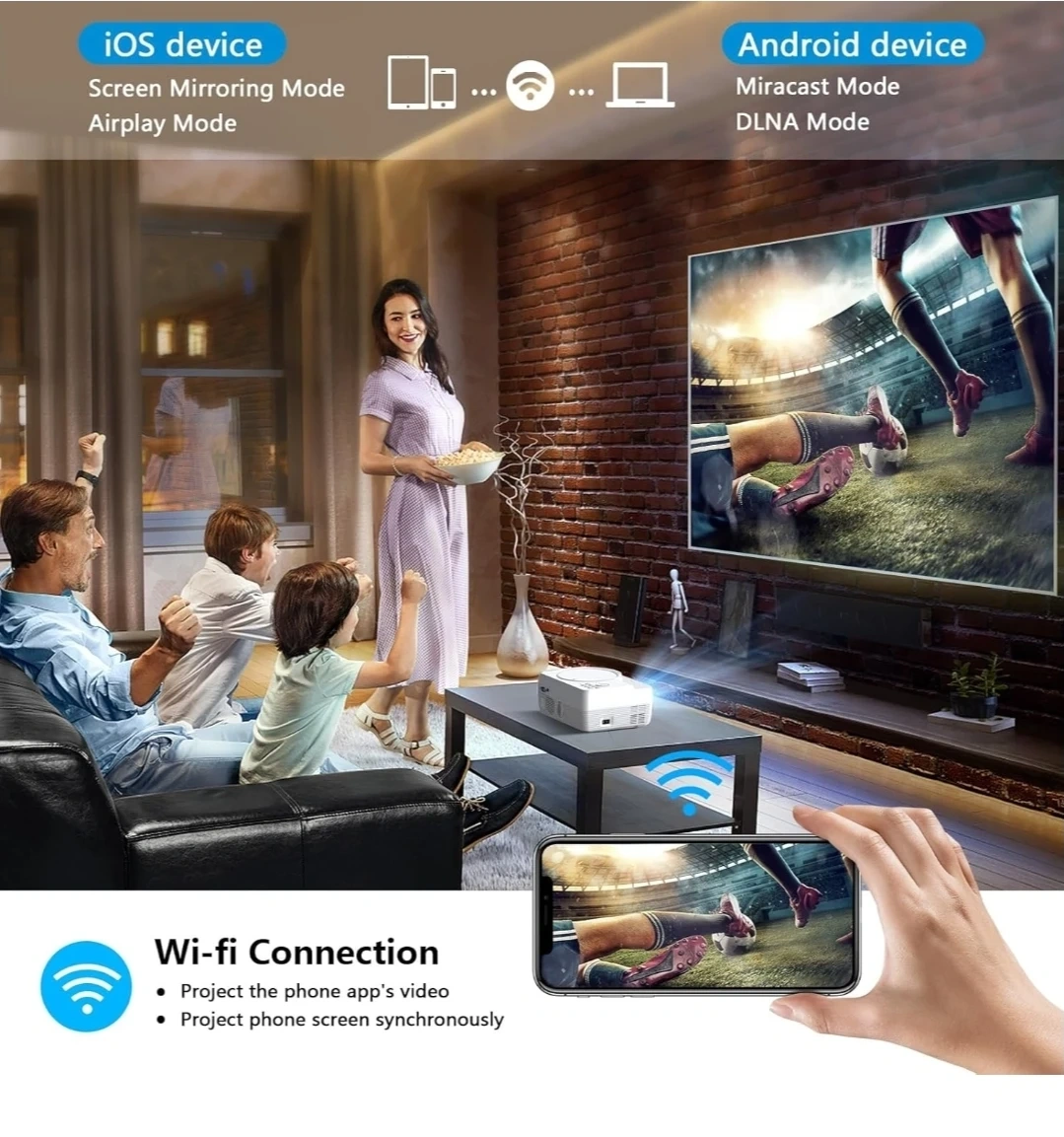 ✅ WiFi + AirPlay + Screen Mirroring (iOS & Android)
