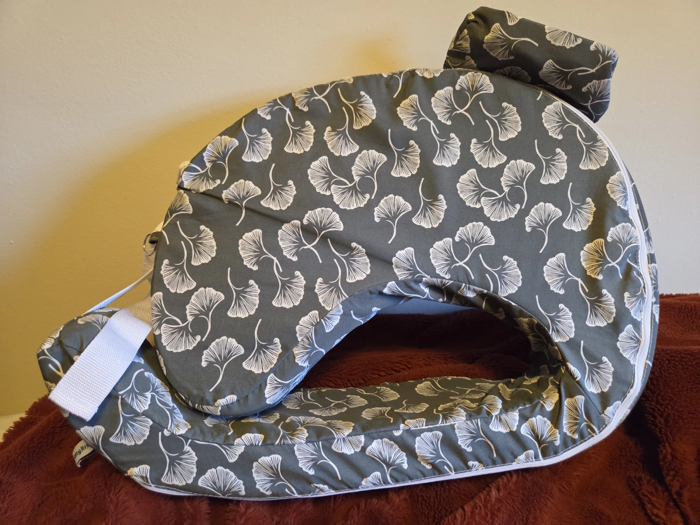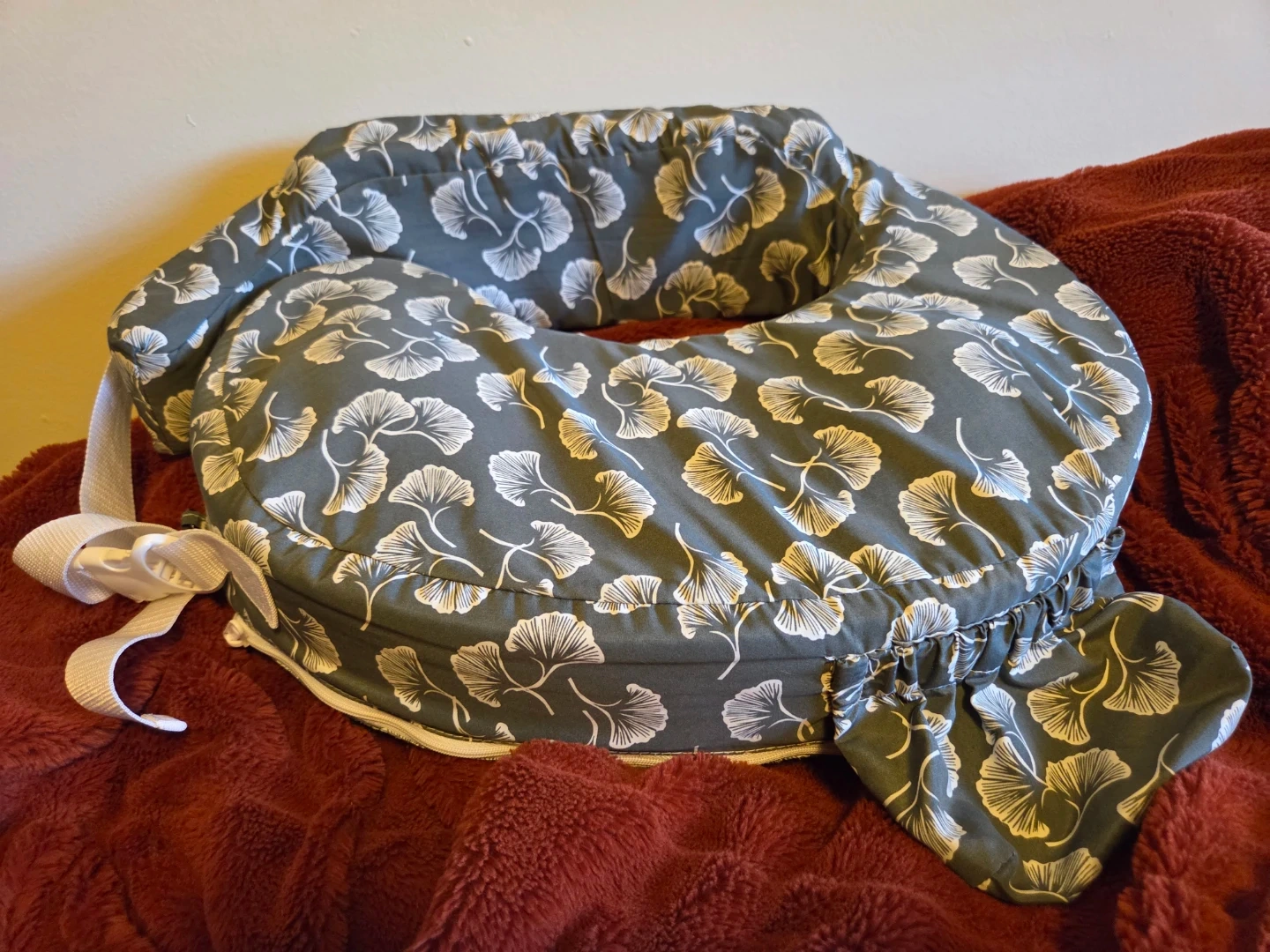 This Boppy Best Latch Breastfeeding Pillow is in great condition and ready to support you and your little one during feeding time! The pillow features a unique latch design and a stylish pattern.