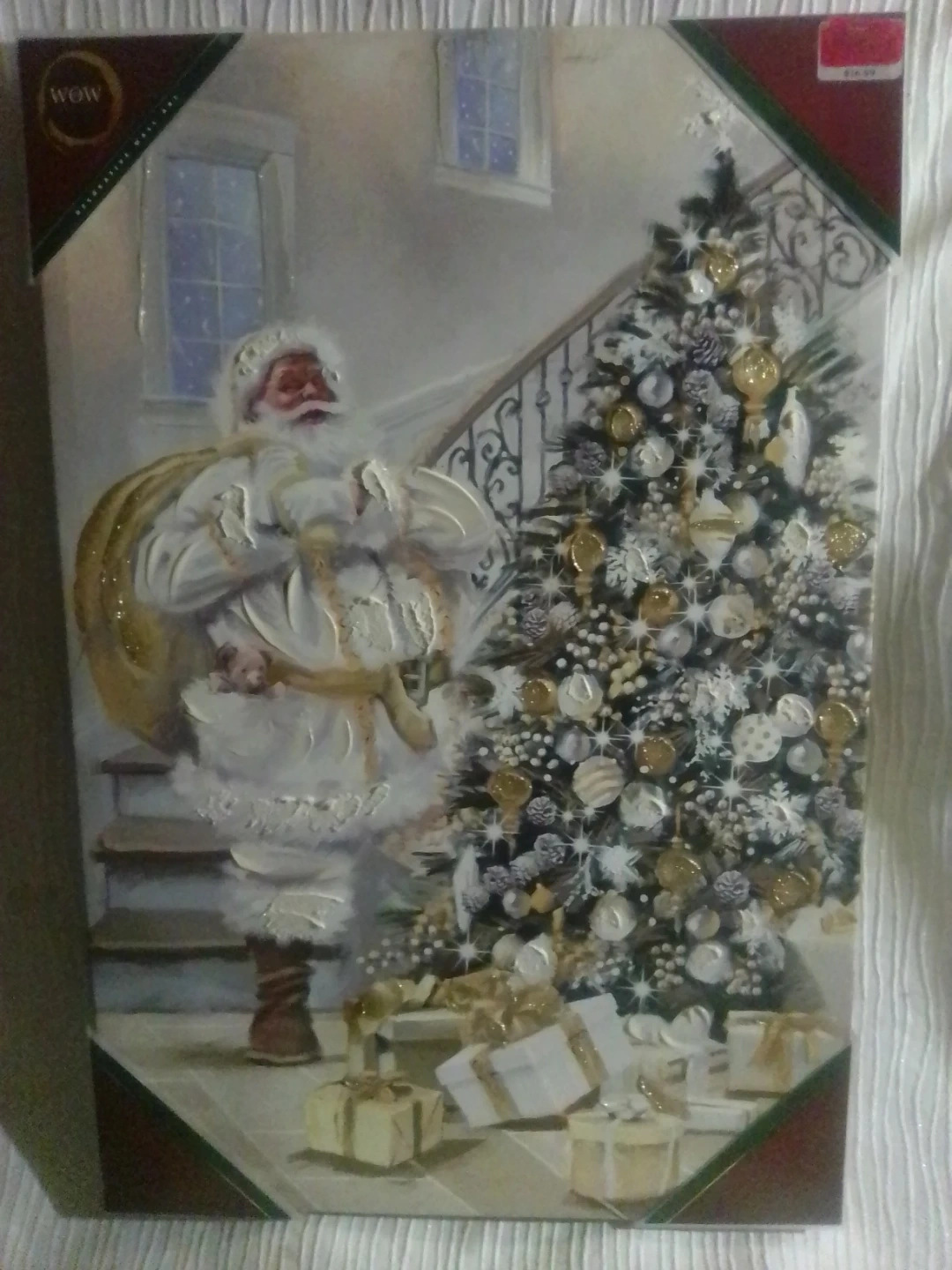 Selling a WOW decorative wall art piece featuring Santa and a Christmas tree. The original price tag shows $39.99. It's in great condition and ready to add some holiday cheer to your home!