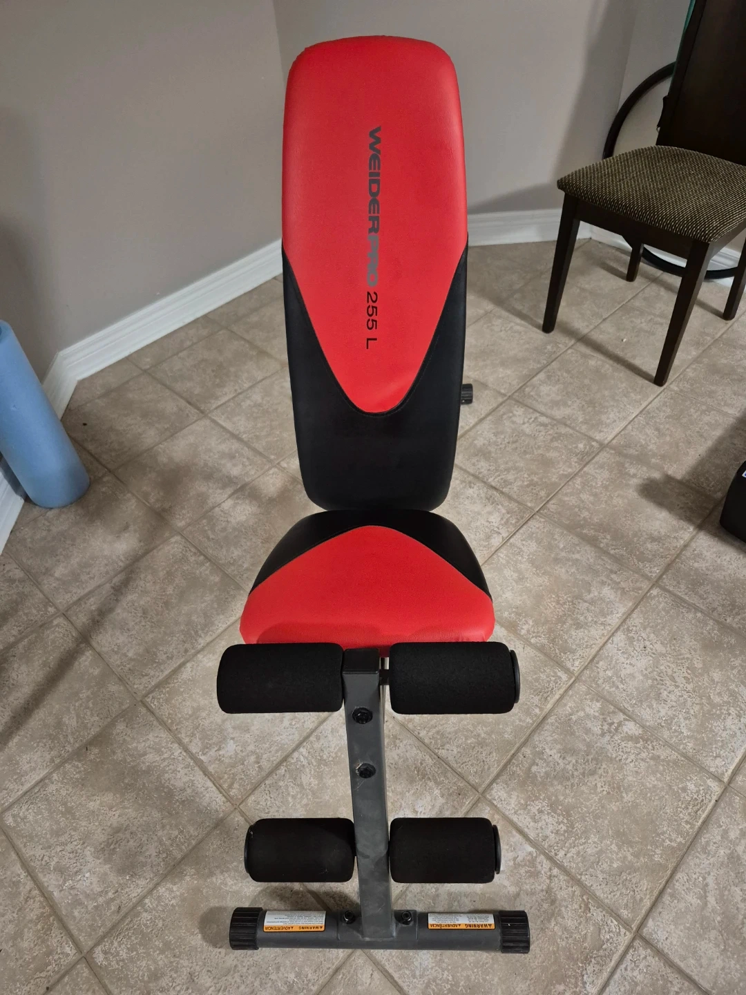 Selling a Weider 265 L weight bench in good condition! It's red and black. Perfect for your home gym setup
