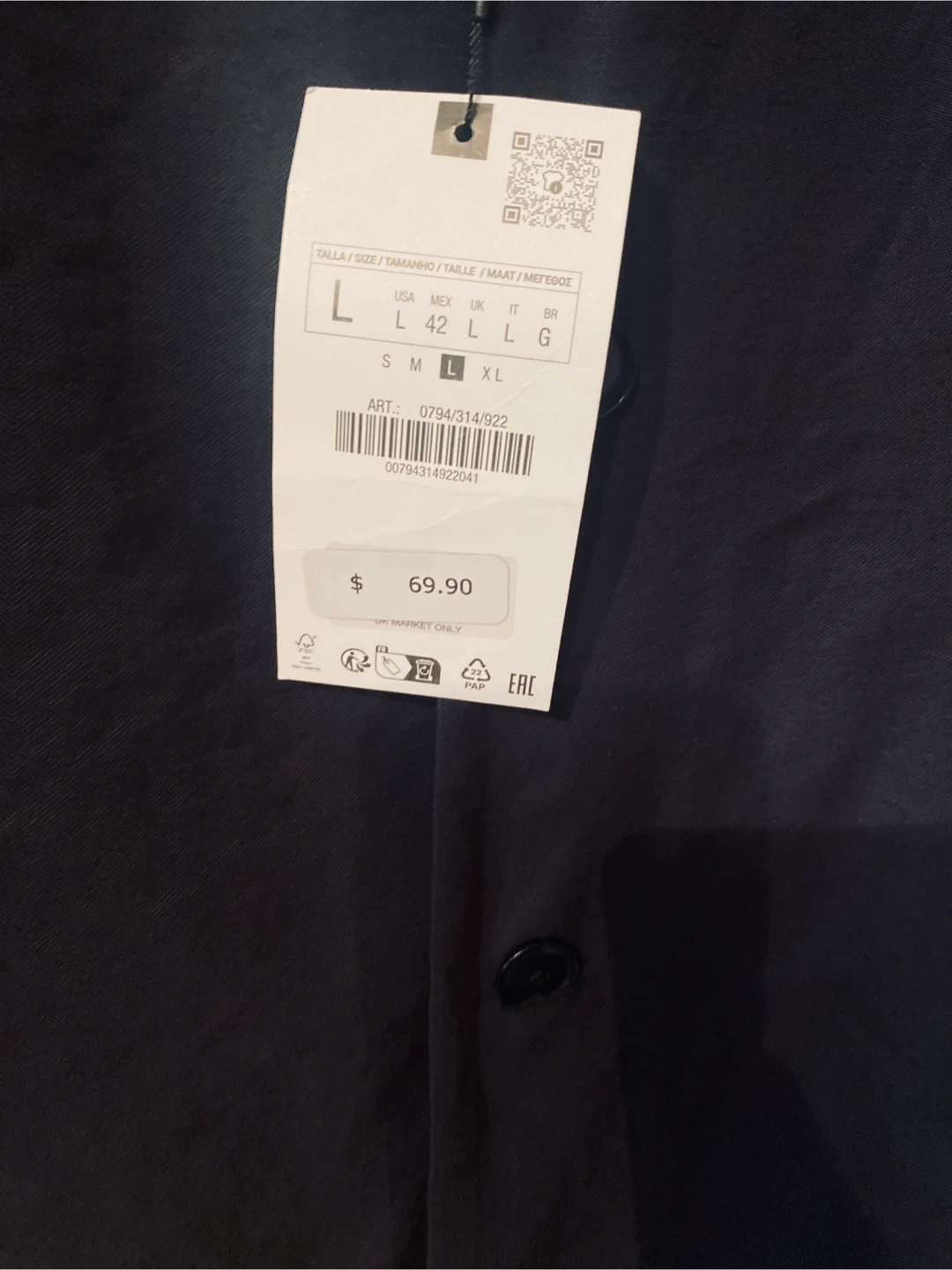 Selling a Zara black button-down shirt in size L! It's in new condition and ready for a new owner. Originally bought for $69.90.
