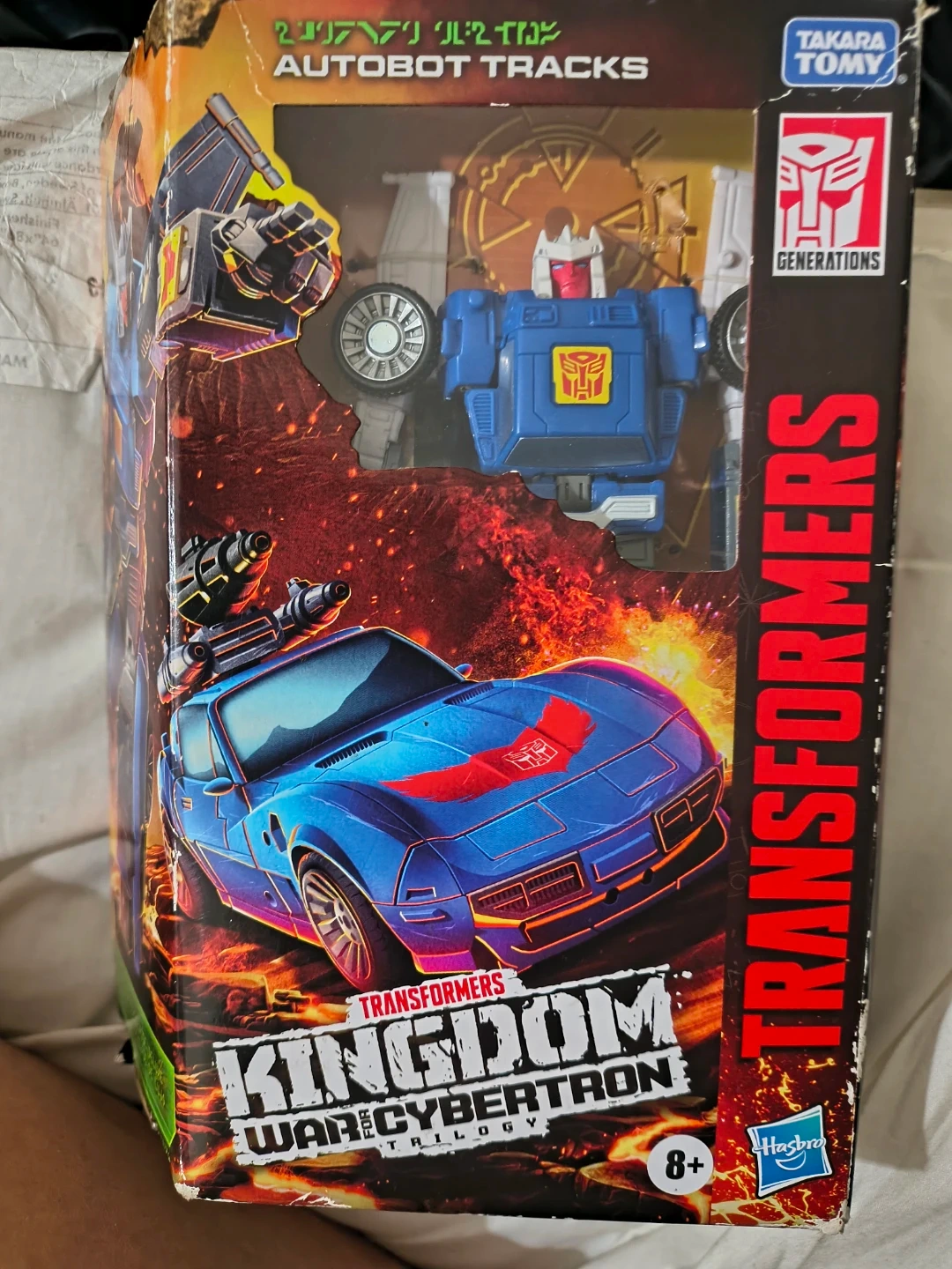 Selling a Transformers Kingdom Warcybertron Trilogy Autobot Tracks action figure. The box is included and in good condition. This figure is manufactured under license from TOMY Company, LTD. TAKARATOMY logo is property of Takara Tomy Corporation and HASBRO and all related trademarks and logos are trademarks of Hasbro, Inc.