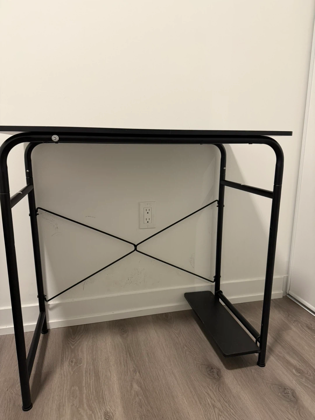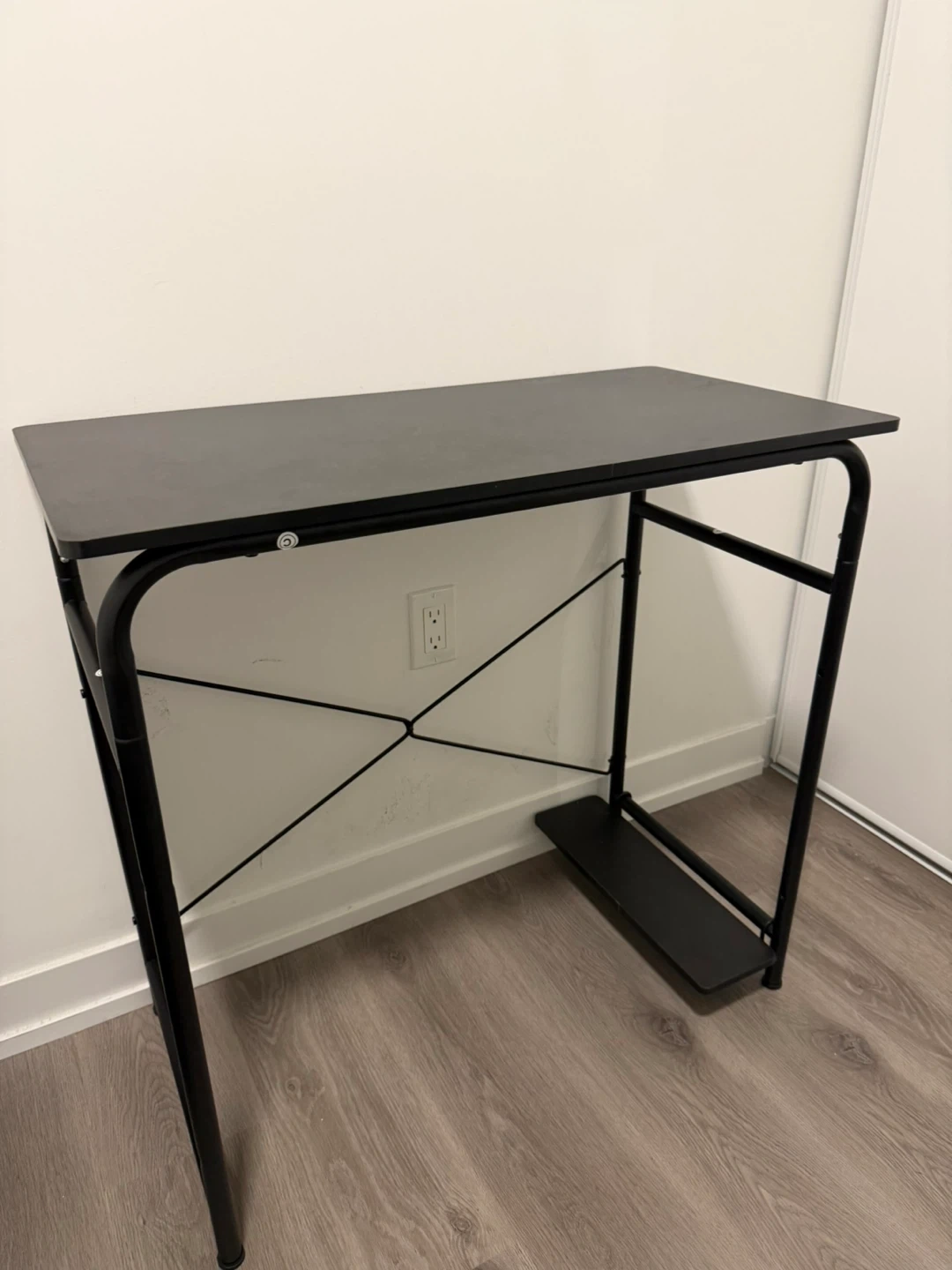 Selling a black metal standing desk in great condition! It's perfect for creating a workspace anywhere in your home. The desk is lightweight, making it easy to move around as needed
