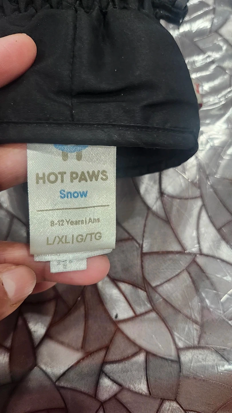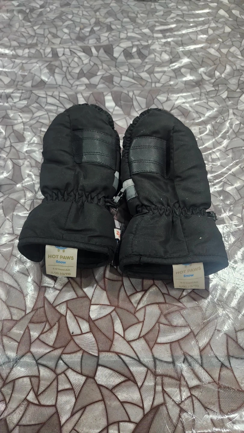 Selling a pair of Hot Paws Kids Snow mittens in size L/XL, recommended for kids aged 8-12 years. They're perfect for keeping little hands warm during winter activities. Will fit a small Adult hands too.