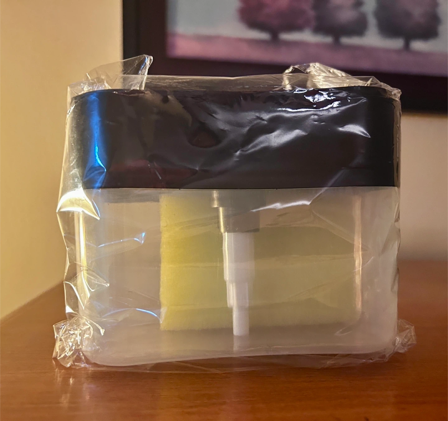 I'm selling a new soap dispenser with a sponge holder. It's brand new and ready to use! It's a convenient way to keep your sink area tidy and organized. Great for kitchens and bathrooms! Comes with new sponge